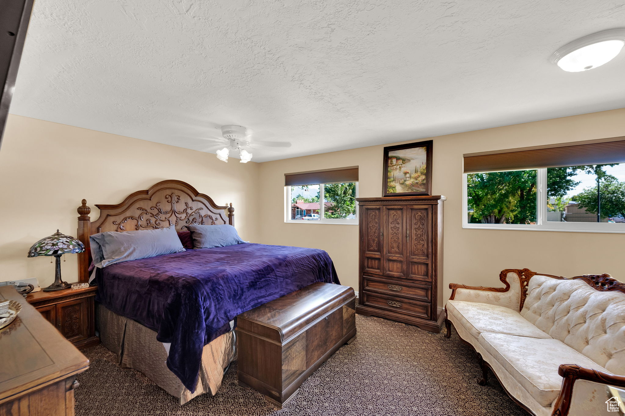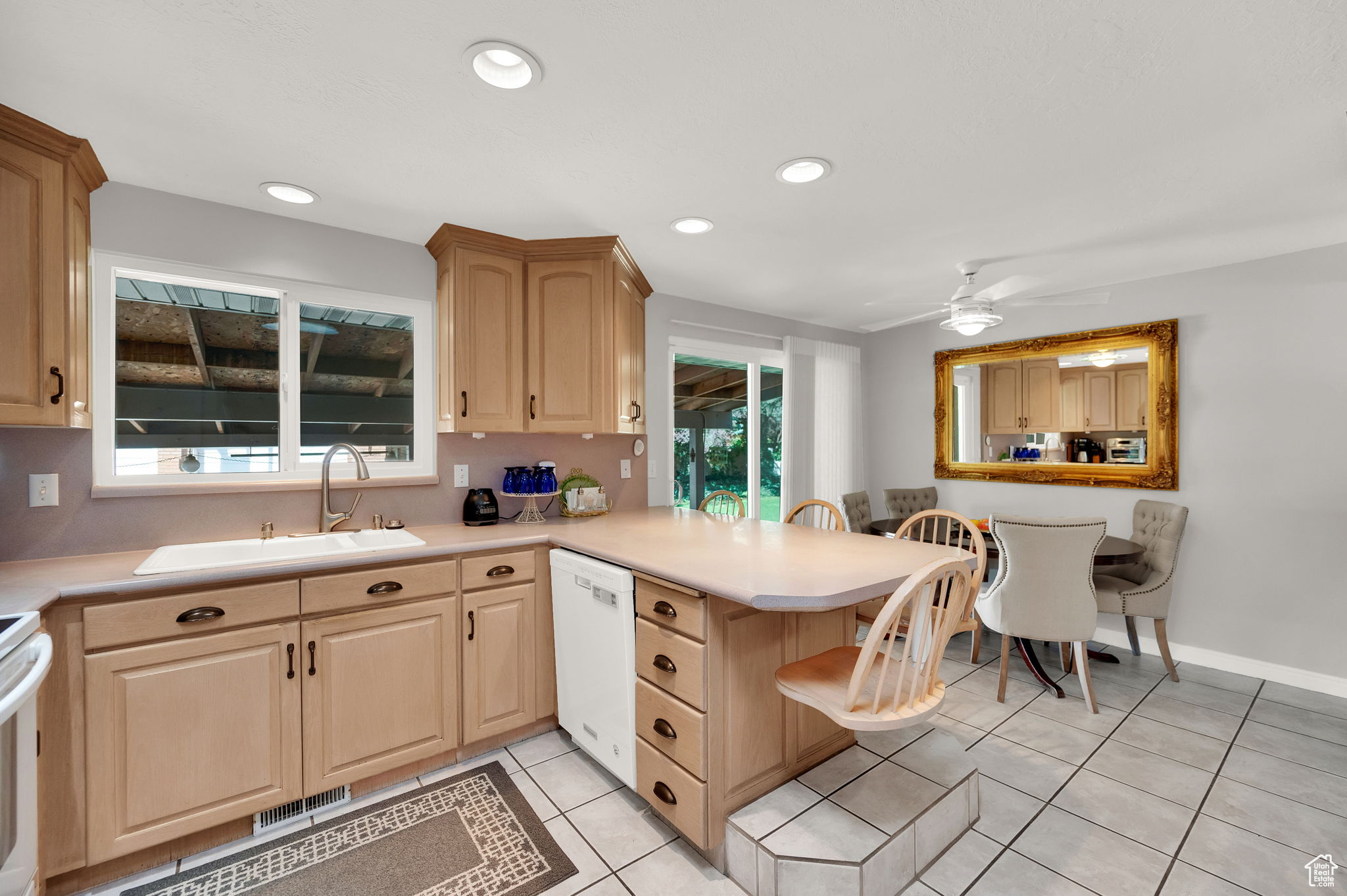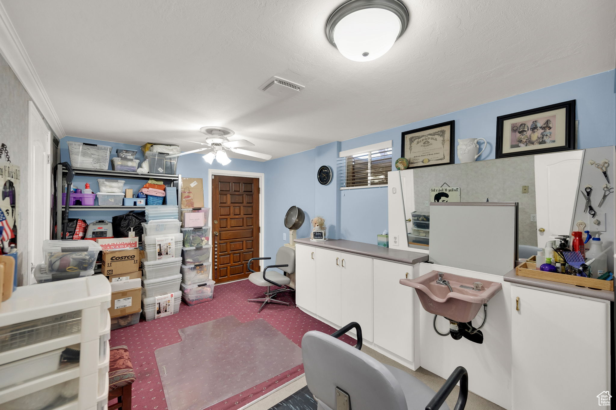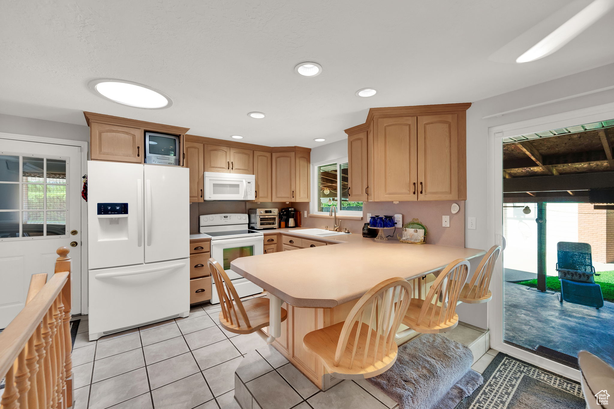 This West Jordan home is in exceptional condition and truly a must-see! Inside, you'll find white oak custom cabinets, a premium gas fireplace, and a natural-lighting skylight in the kitchen. The living room features cozy carpet flooring, while the downstairs retreat offers a jetted tub for relaxation. Quality window treatments add a finishing touch throughout. The basement includes a walkout studio, previously used as a hair salon, perfect for a home business, guest suite, or creative space. Outside, enjoy the 775 sq. ft. brick garage with a 350 sq. ft. loft. The property has RV hookups with power, water, and sewer, and a backyard lined with mature trees that back up to a church parking lot, offering excellent privacy. Conveniently located near schools, shopping, and commuter routes, this home blends comfort, functionality, and versatility.