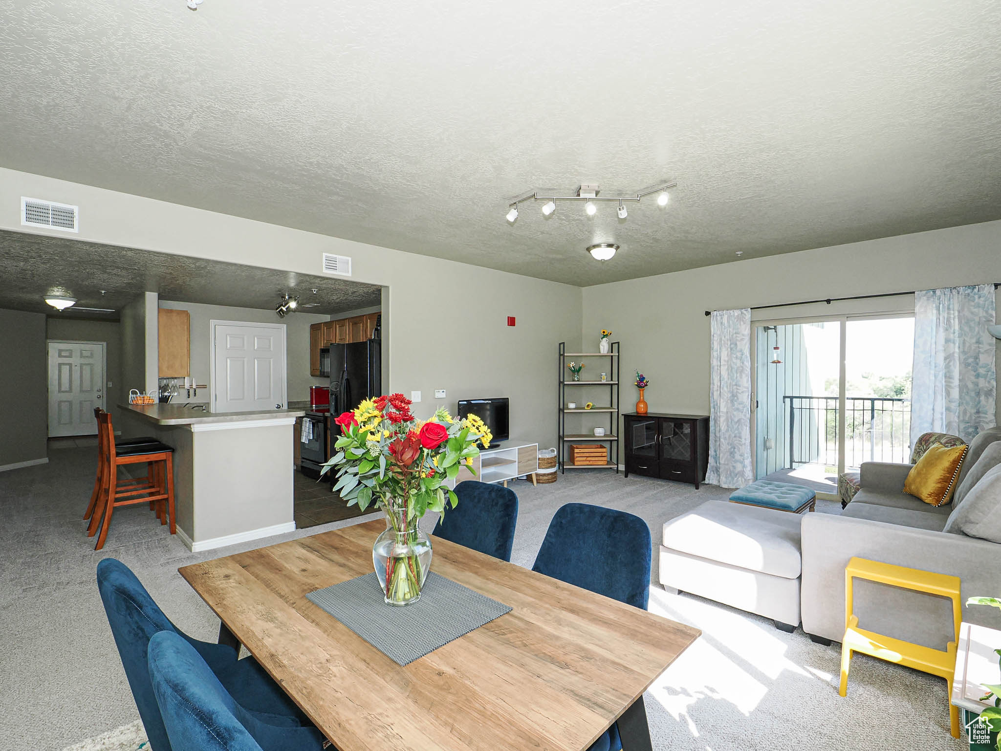 Welcome to Albion Village living at its finest! This top-floor condo offers 3 bedrooms, 2 baths, and 1,214 sq. ft. of comfortable living space. Freshly updated with brand-new carpet, the home feels light, bright, and move-in ready. Perched on the 4th floor, you'll love the expansive windows and private balcony that showcase breathtaking mountain views-perfect for enjoying morning coffee or evening sunsets. The open-concept layout connects the kitchen, dining, and living spaces seamlessly, creating an inviting atmosphere for everyday living or entertaining. The spacious primary suite includes a private bath and walk-in closet, while two additional bedrooms provide flexibility for family, guests, or a home office. Located in the heart of Sandy, Albion Village offers convenient access to shopping, dining, parks, and commuter routes. With stunning views and a freshly updated interior, this condo is the perfect blend of comfort and location.