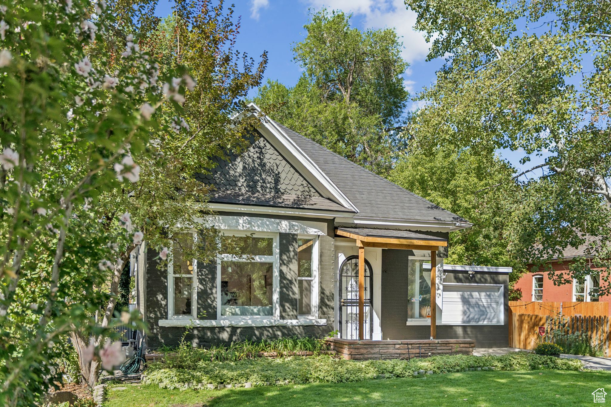 Situated right behind Trolley Square and just a couple of blocks from Liberty Park, this beautifully updated historic home blends timeless character with today's modern conveniences. Step inside to find soaring ceilings, brand-new flooring, and a stunning open-concept layout that feels both spacious and inviting. The heart of the home is the modern kitchen, featuring sleek new cabinets, quartz countertops, and stainless steel appliances-perfect for cooking and entertaining. With 4 bedrooms and 2 bathrooms, there's plenty of space for family, guests, or a home office. This property is also one of the rare finds in the neighborhood with both a garage and off-street parking. Outside, enjoy a fully fenced backyard shaded by mature trees, a covered patio for gatherings, and peace of mind with a brand-new roof and updated lighting throughout. Unbeatable location, historic charm, and modern updates-this home truly has it all! Square footage figures are provided as a courtesy estimate only and were obtained from County Records. Buyer is advised to obtain an independent measurement.
