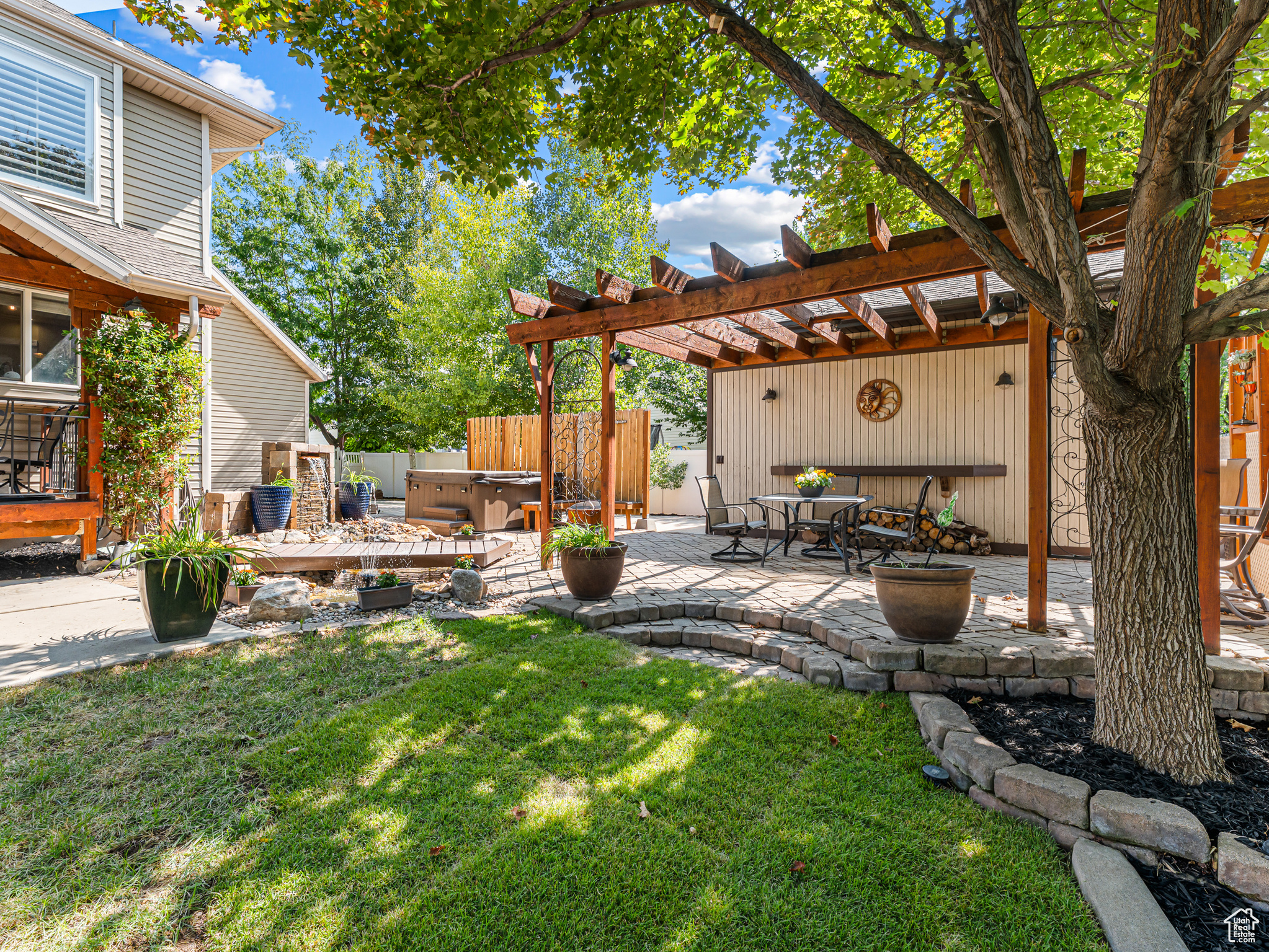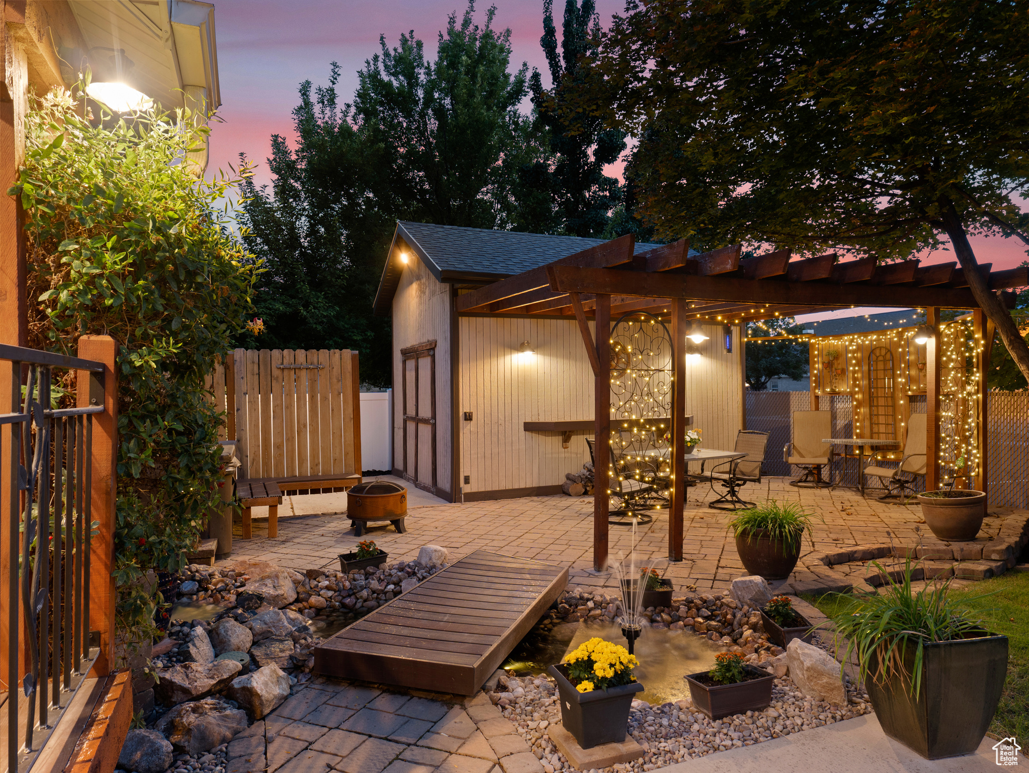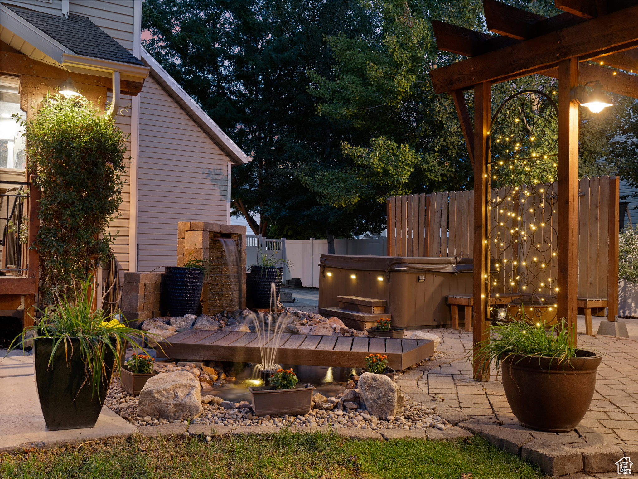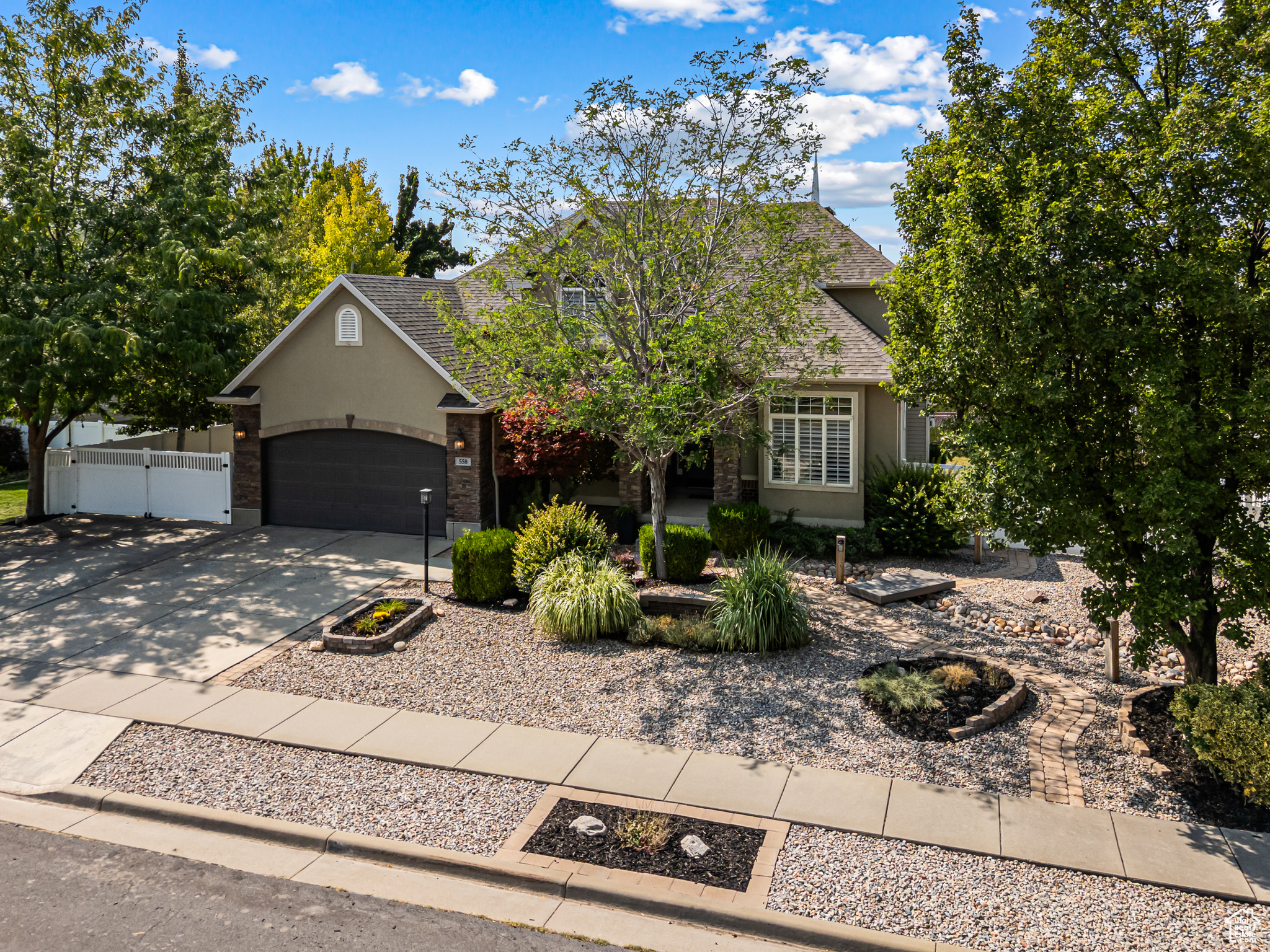 **Experience English Contemporary Elegance in Kaysville** Built in 1998 and completely transformed, this stunning two-story Kaysville residence masterfully blends traditional architecture with the layered aesthetic of English Contemporary design. Situated on a generous .22-acre corner lot, the home's exterior makes an immediate statement with exquisite xeriscape landscaping and a massive 56-foot RV pad along the south side of the property. The backyard is a private sanctuary, featuring an idyllic waterfall, a covered pergola perfect for outdoor dining, a swing set, and an in-ground trampoline. Relax and unwind in the included hot tub -- your personal oasis awaits. Step inside to a professionally curated interior where every detail is intentional. A professional painter and artist collaborated on the design, meticulously selecting every paint color, wall fixture, and light source to create a unique atmosphere that shifts with the time of day. This layered aesthetic is evident everywhere, from the stunning stone arch above the kitchen sink to the elegant tray ceiling in the primary bedroom. Beyond its artistic design, this home is built for modern living with impressive functional amenities, including: A convenient laundry chute; doors that open directly to the backyard oasis; a luxurious primary bedroom with a full en suite with large upgraded shower; and generous cold storage. The sale also includes high-end Samsung appliances, a full entertainment system in the basement, and perfectly organized RGB lighting for the ultimate custom ambiance. Enjoy the ideal Kaysville location with close proximity to a wealth of community features, including stocked fishing ponds, Davis Tech Park, Davis Park Golf Course, and Lagoon Amusement Park. This is a truly special property that must be experienced in person.