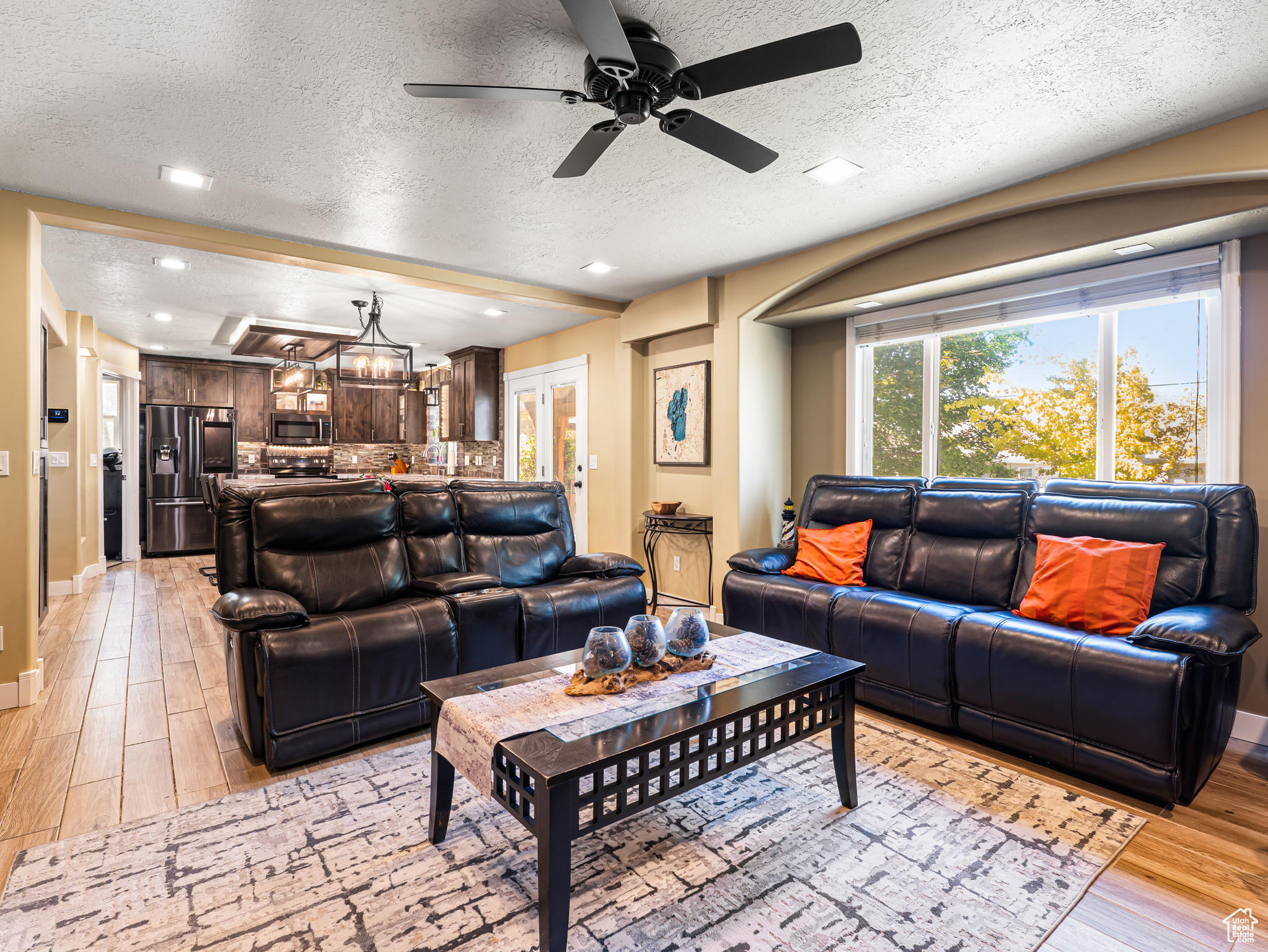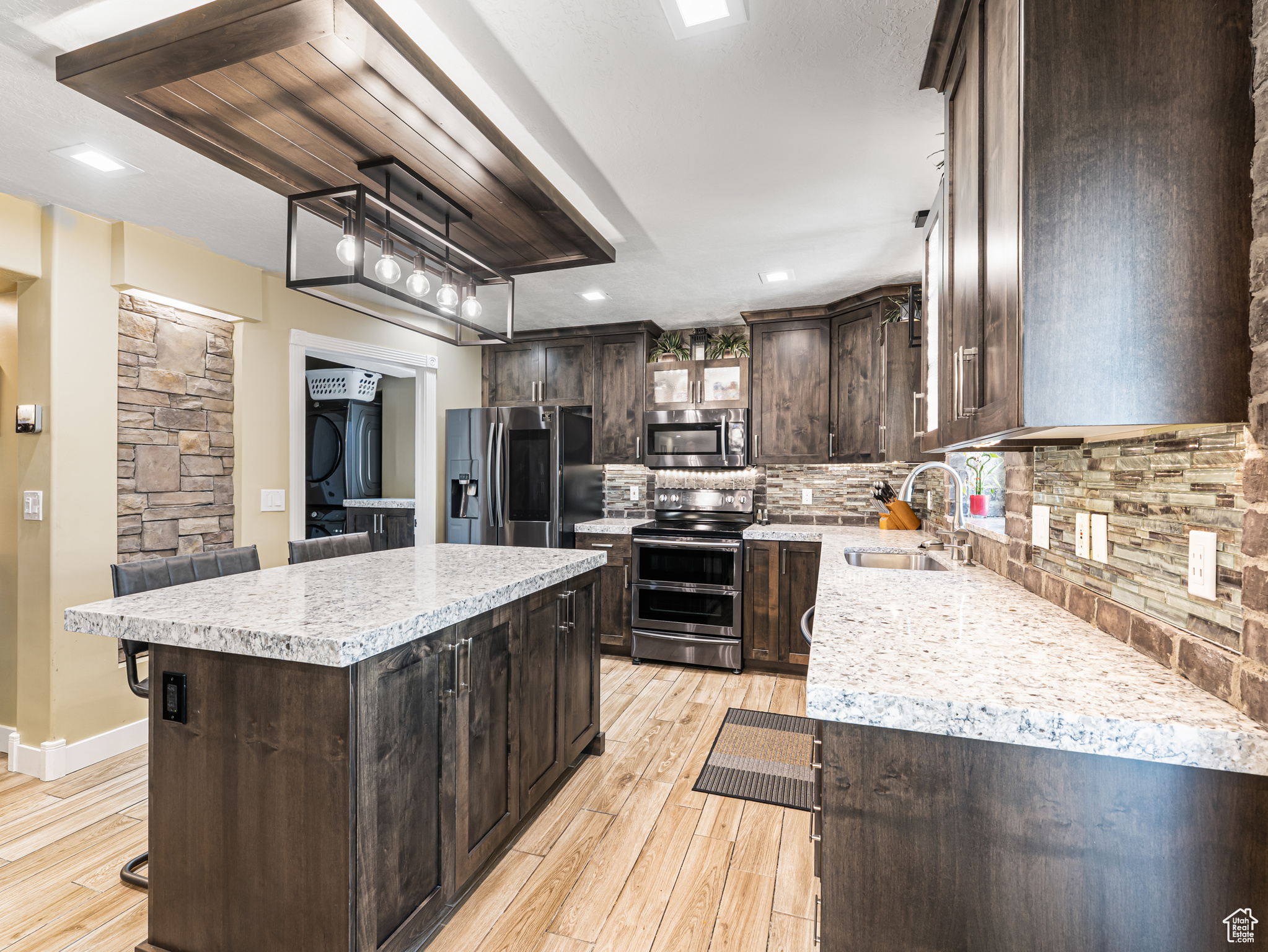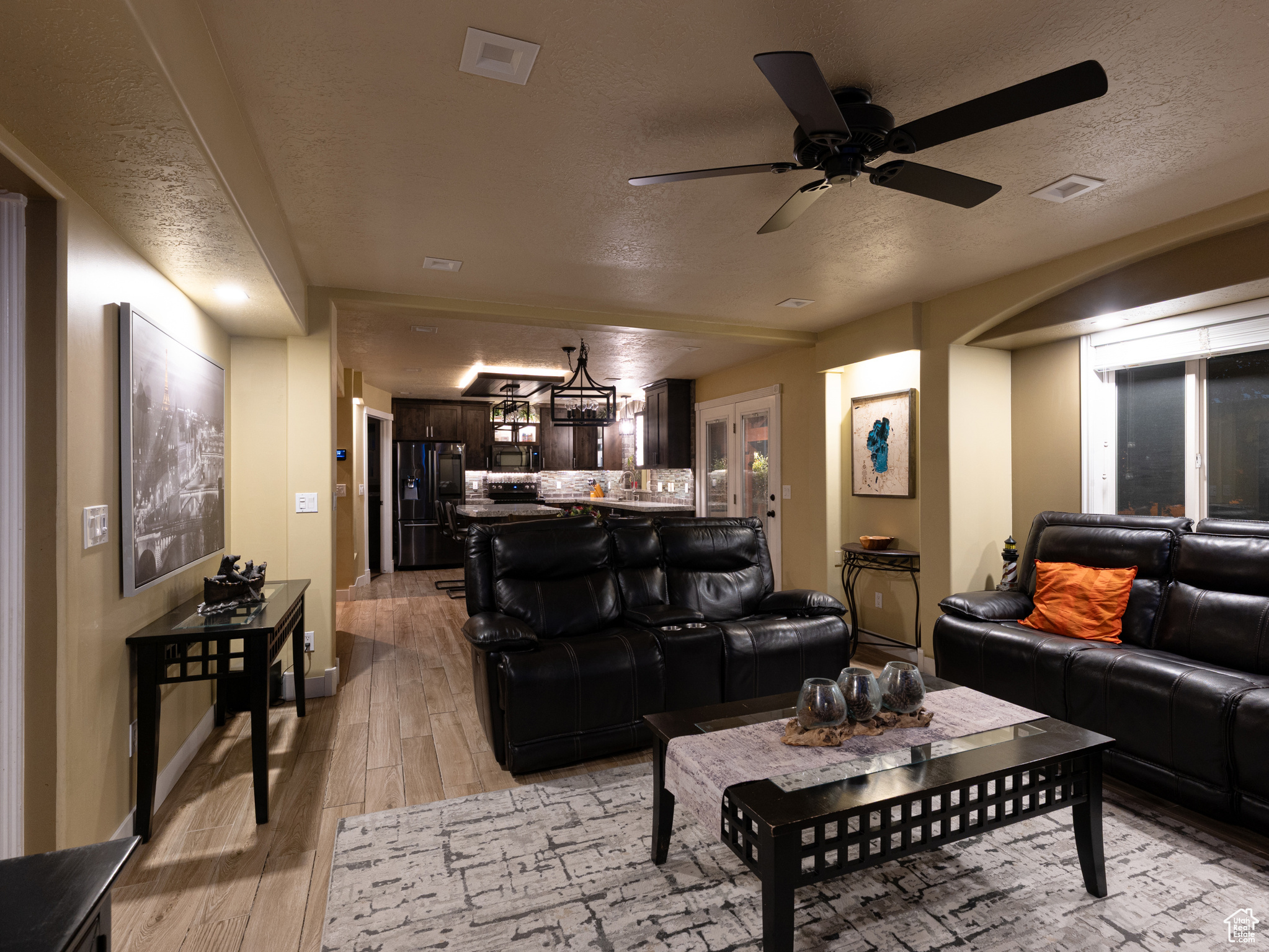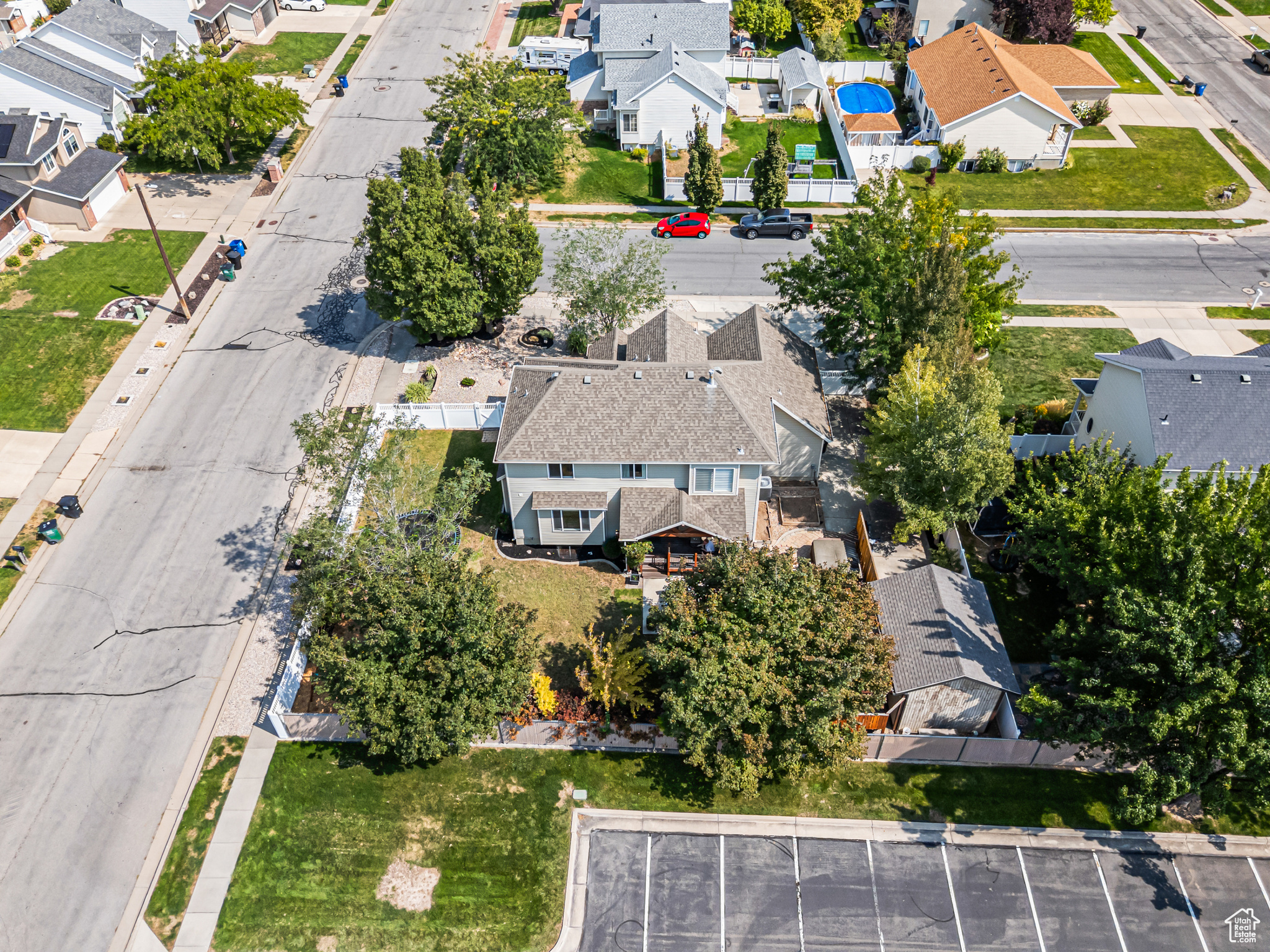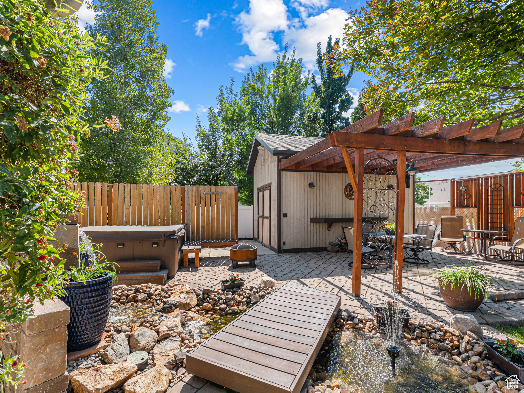 **Experience English Contemporary Elegance in Kaysville** Built in 1998 and completely transformed, this stunning two-story Kaysville residence masterfully blends traditional architecture with the layered aesthetic of English Contemporary design. Situated on a generous .22-acre corner lot, the home's exterior makes an immediate statement with exquisite xeriscape landscaping and a massive 56-foot RV pad along the south side of the property. The backyard is a private sanctuary, featuring an idyllic waterfall, a covered pergola perfect for outdoor dining, a swing set, and an in-ground trampoline. Relax and unwind in the included hot tub -- your personal oasis awaits. Step inside to a professionally curated interior where every detail is intentional. A professional painter and artist collaborated on the design, meticulously selecting every paint color, wall fixture, and light source to create a unique atmosphere that shifts with the time of day. This layered aesthetic is evident everywhere, from the stunning stone arch above the kitchen sink to the elegant tray ceiling in the primary bedroom. Beyond its artistic design, this home is built for modern living with impressive functional amenities, including: A convenient laundry chute; doors that open directly to the backyard oasis; a luxurious primary bedroom with a full en suite with large upgraded shower; and generous cold storage. The sale also includes high-end Samsung appliances, a full entertainment system in the basement, and perfectly organized RGB lighting for the ultimate custom ambiance. Enjoy the ideal Kaysville location with close proximity to a wealth of community features, including stocked fishing ponds, Davis Tech Park, Davis Park Golf Course, and Lagoon Amusement Park. This is a truly special property that must be experienced in person.