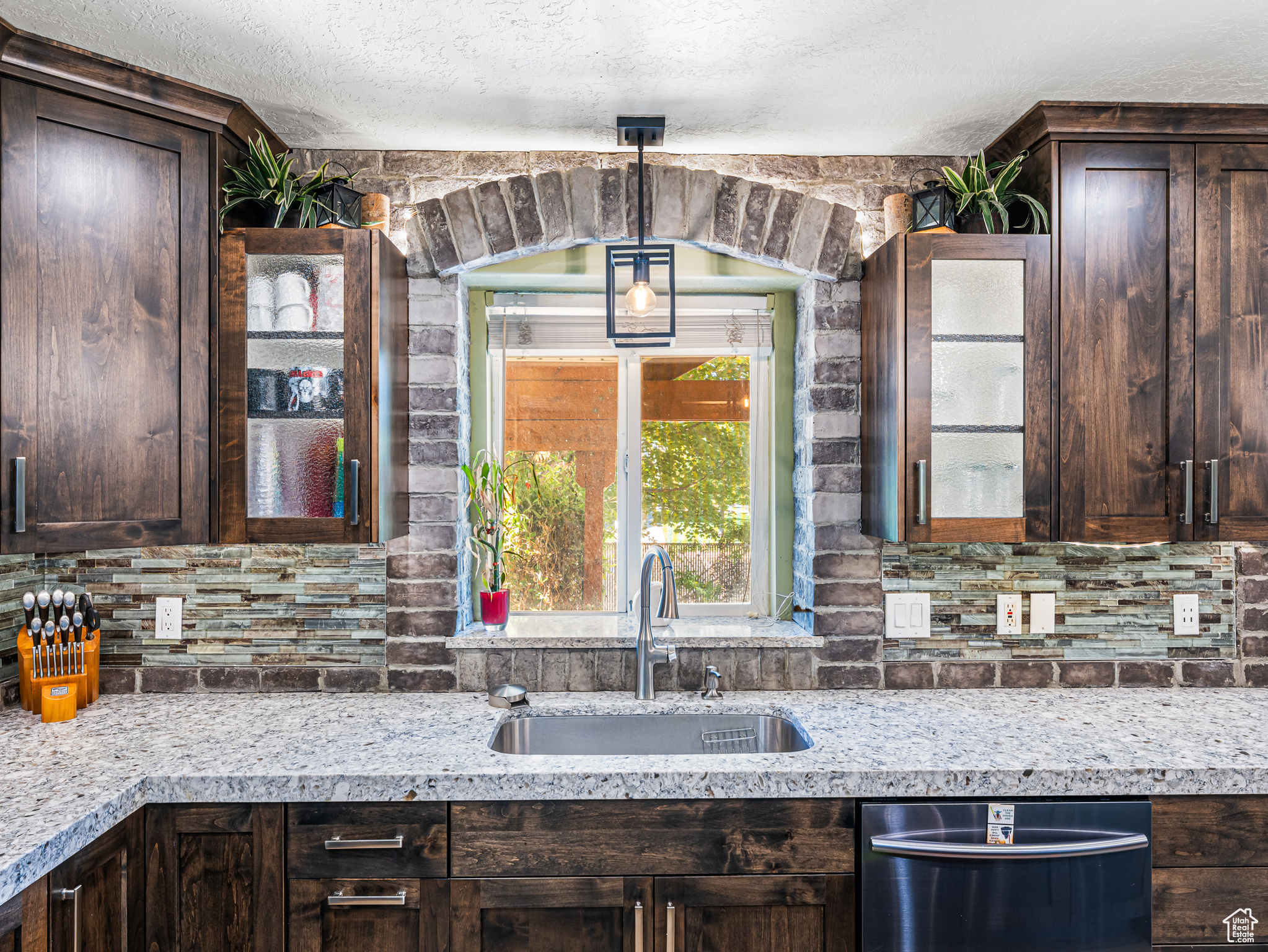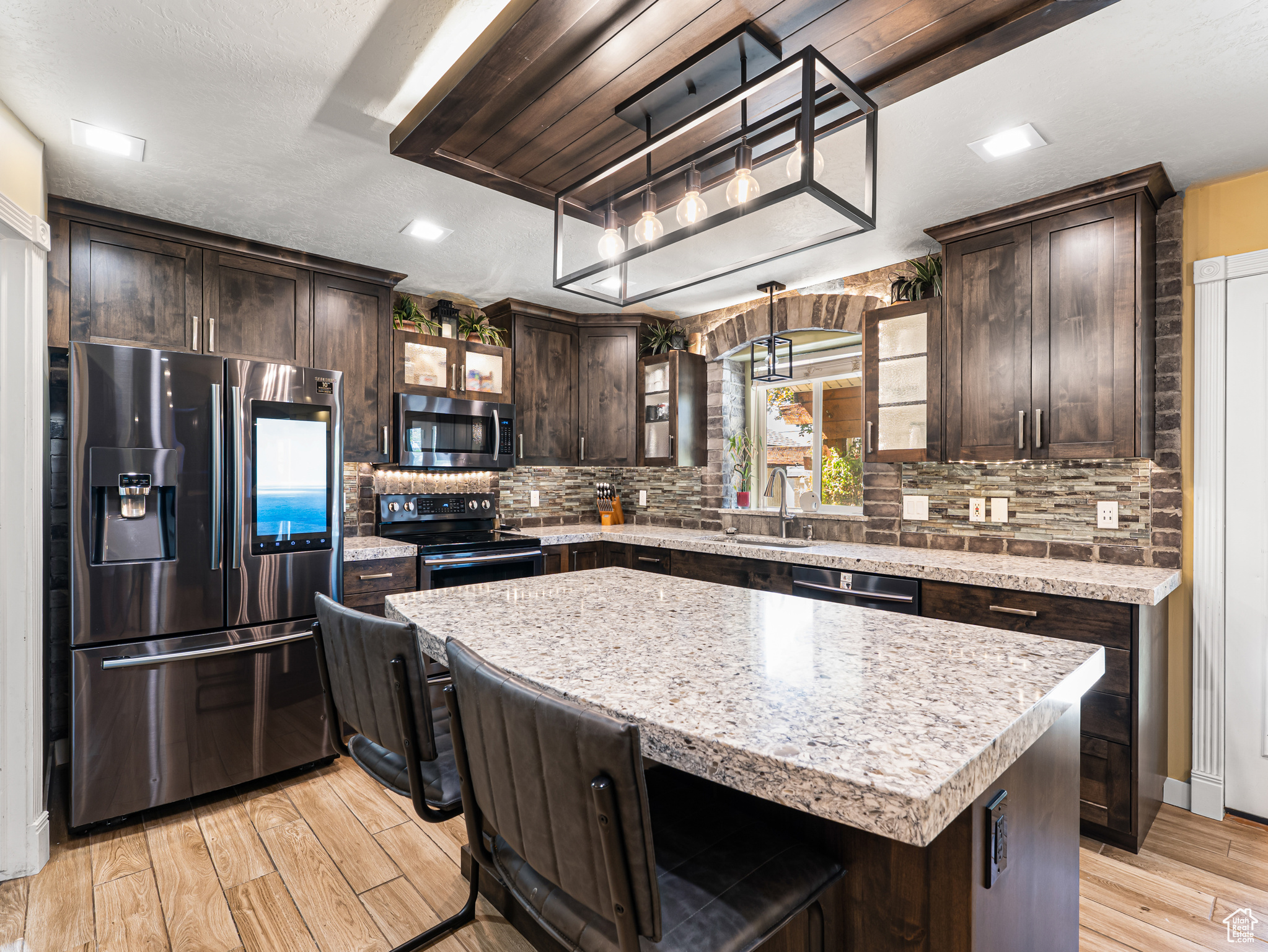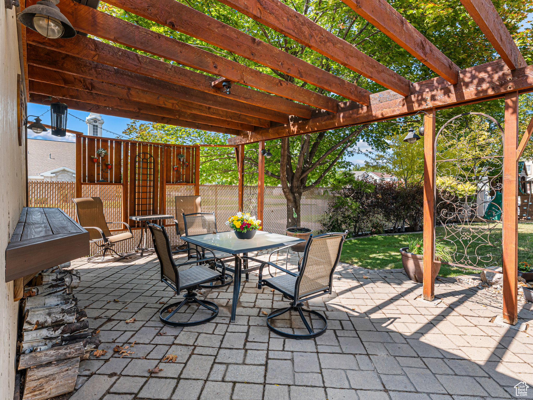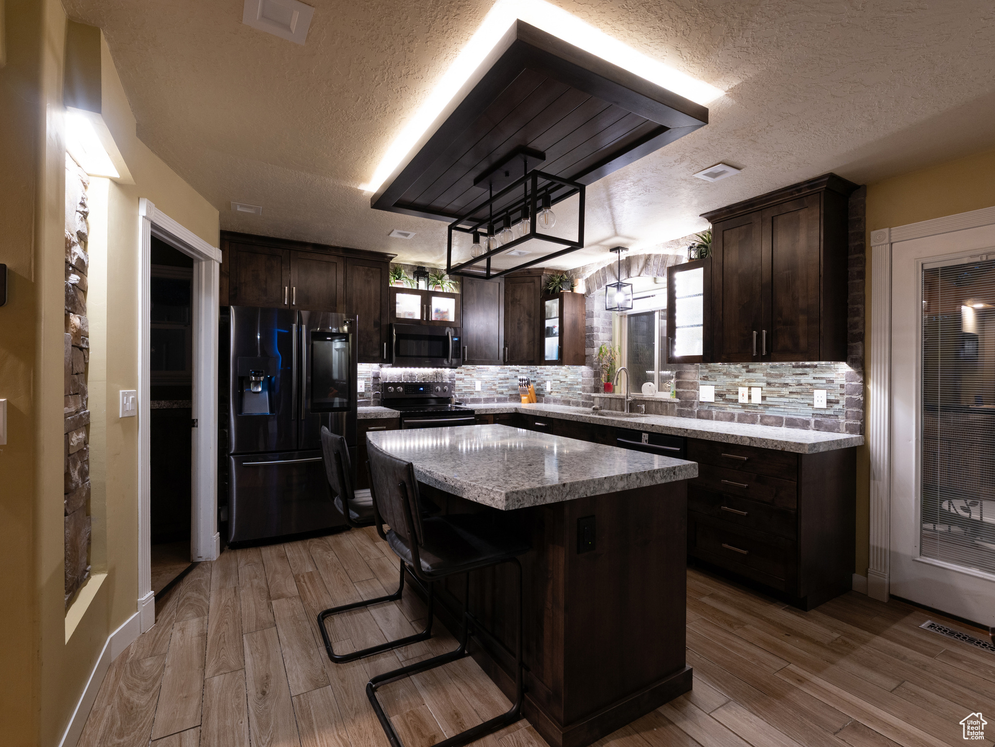 **Experience English Contemporary Elegance in Kaysville** Built in 1998 and completely transformed, this stunning two-story Kaysville residence masterfully blends traditional architecture with the layered aesthetic of English Contemporary design. Situated on a generous .22-acre corner lot, the home's exterior makes an immediate statement with exquisite xeriscape landscaping and a massive 56-foot RV pad along the south side of the property. The backyard is a private sanctuary, featuring an idyllic waterfall, a covered pergola perfect for outdoor dining, a swing set, and an in-ground trampoline. Relax and unwind in the included hot tub -- your personal oasis awaits. Step inside to a professionally curated interior where every detail is intentional. A professional painter and artist collaborated on the design, meticulously selecting every paint color, wall fixture, and light source to create a unique atmosphere that shifts with the time of day. This layered aesthetic is evident everywhere, from the stunning stone arch above the kitchen sink to the elegant tray ceiling in the primary bedroom. Beyond its artistic design, this home is built for modern living with impressive functional amenities, including: A convenient laundry chute; doors that open directly to the backyard oasis; a luxurious primary bedroom with a full en suite with large upgraded shower; and generous cold storage. The sale also includes high-end Samsung appliances, a full entertainment system in the basement, and perfectly organized RGB lighting for the ultimate custom ambiance. Enjoy the ideal Kaysville location with close proximity to a wealth of community features, including stocked fishing ponds, Davis Tech Park, Davis Park Golf Course, and Lagoon Amusement Park. This is a truly special property that must be experienced in person.