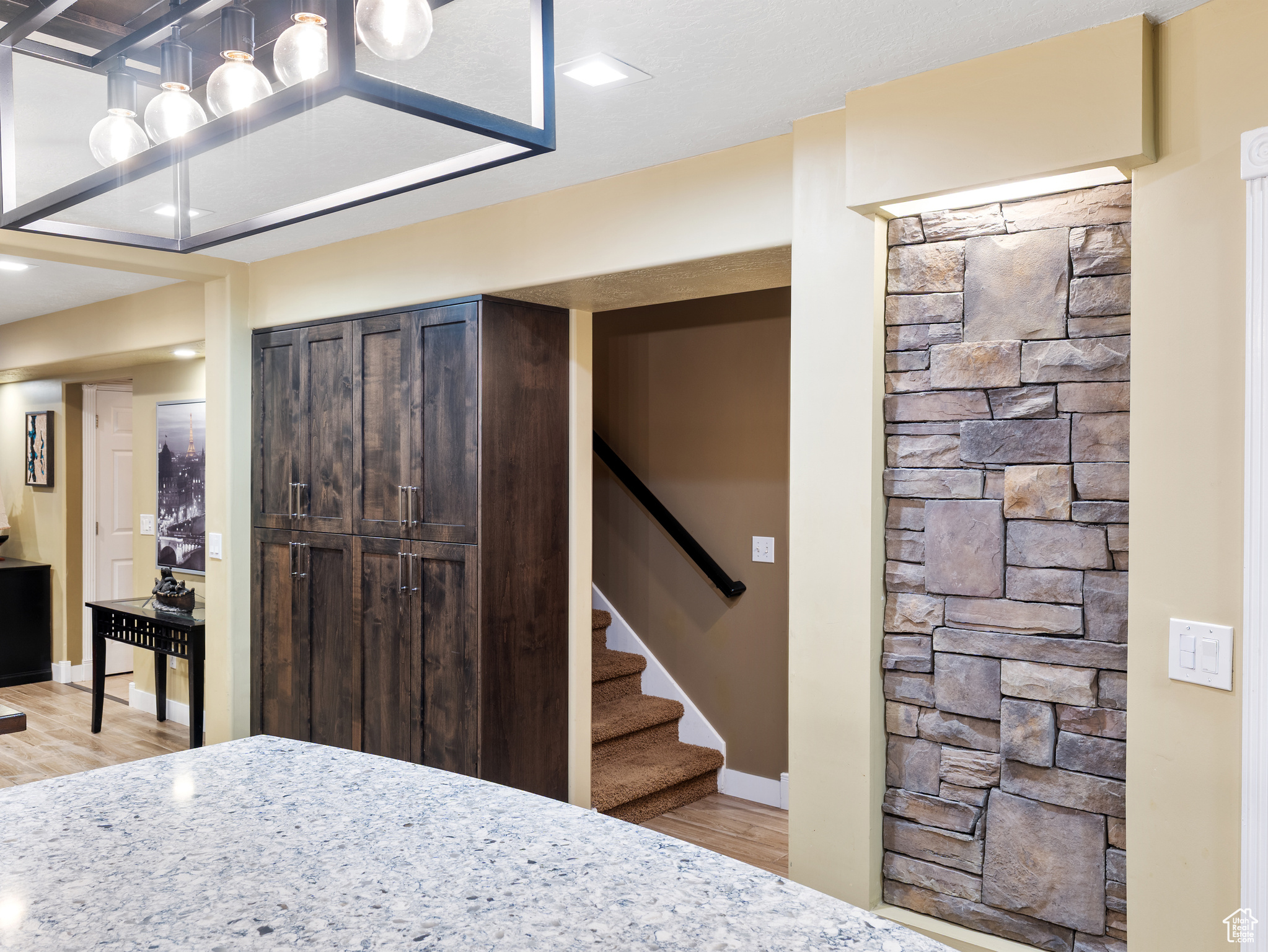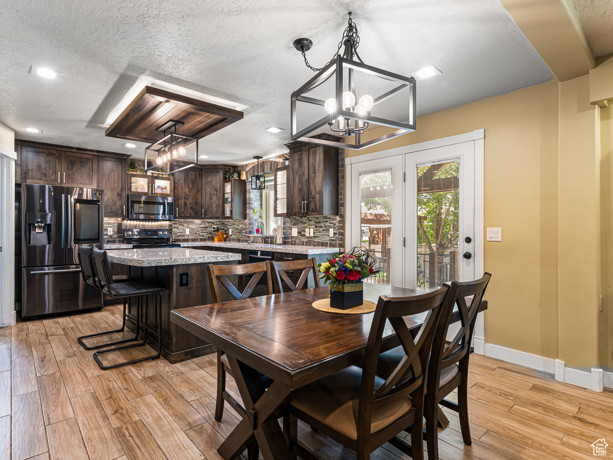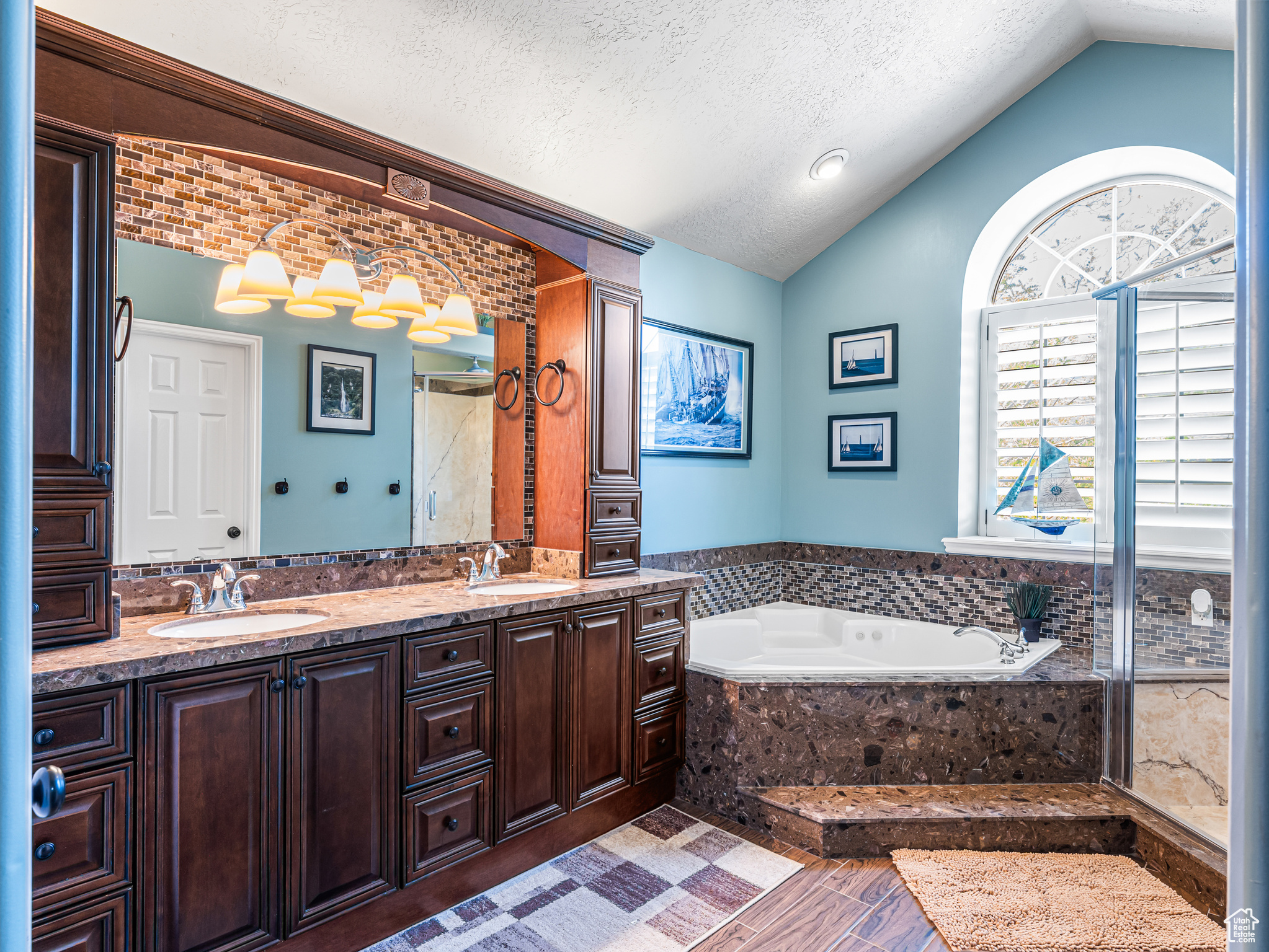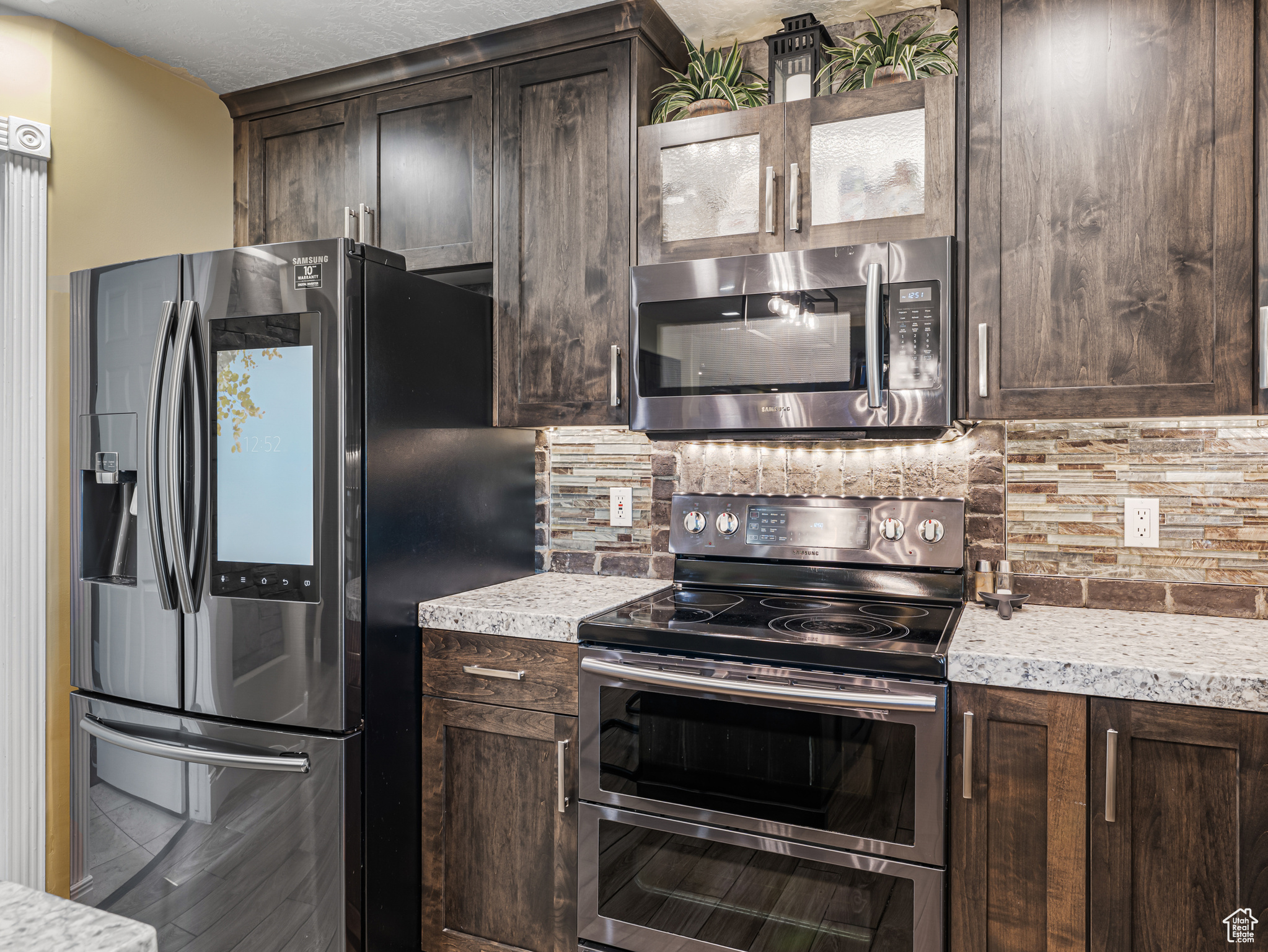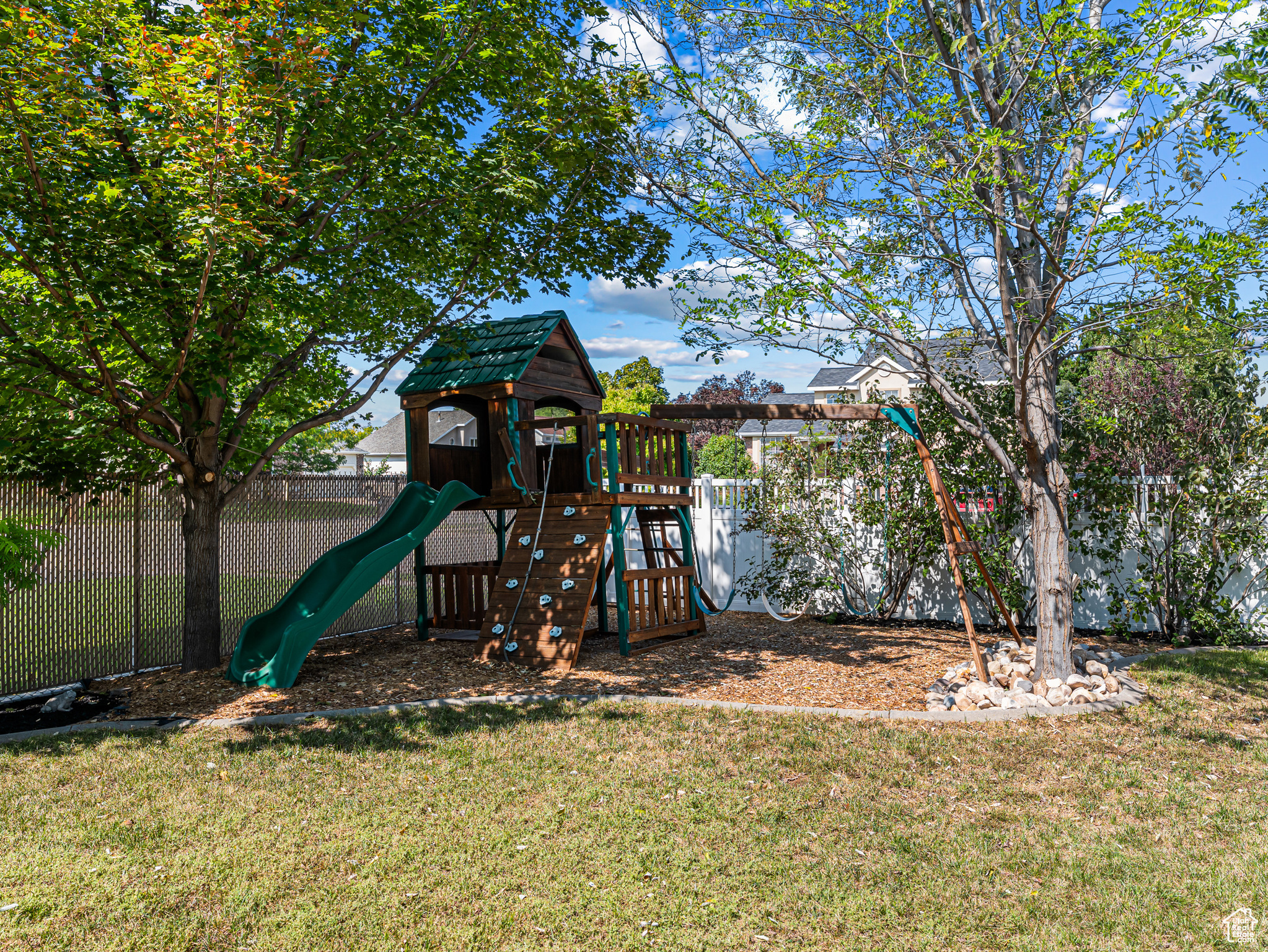 **Experience English Contemporary Elegance in Kaysville** Built in 1998 and completely transformed, this stunning two-story Kaysville residence masterfully blends traditional architecture with the layered aesthetic of English Contemporary design. Situated on a generous .22-acre corner lot, the home's exterior makes an immediate statement with exquisite xeriscape landscaping and a massive 56-foot RV pad along the south side of the property. The backyard is a private sanctuary, featuring an idyllic waterfall, a covered pergola perfect for outdoor dining, a swing set, and an in-ground trampoline. Relax and unwind in the included hot tub -- your personal oasis awaits. Step inside to a professionally curated interior where every detail is intentional. A professional painter and artist collaborated on the design, meticulously selecting every paint color, wall fixture, and light source to create a unique atmosphere that shifts with the time of day. This layered aesthetic is evident everywhere, from the stunning stone arch above the kitchen sink to the elegant tray ceiling in the primary bedroom. Beyond its artistic design, this home is built for modern living with impressive functional amenities, including: A convenient laundry chute; doors that open directly to the backyard oasis; a luxurious primary bedroom with a full en suite with large upgraded shower; and generous cold storage. The sale also includes high-end Samsung appliances, a full entertainment system in the basement, and perfectly organized RGB lighting for the ultimate custom ambiance. Enjoy the ideal Kaysville location with close proximity to a wealth of community features, including stocked fishing ponds, Davis Tech Park, Davis Park Golf Course, and Lagoon Amusement Park. This is a truly special property that must be experienced in person.