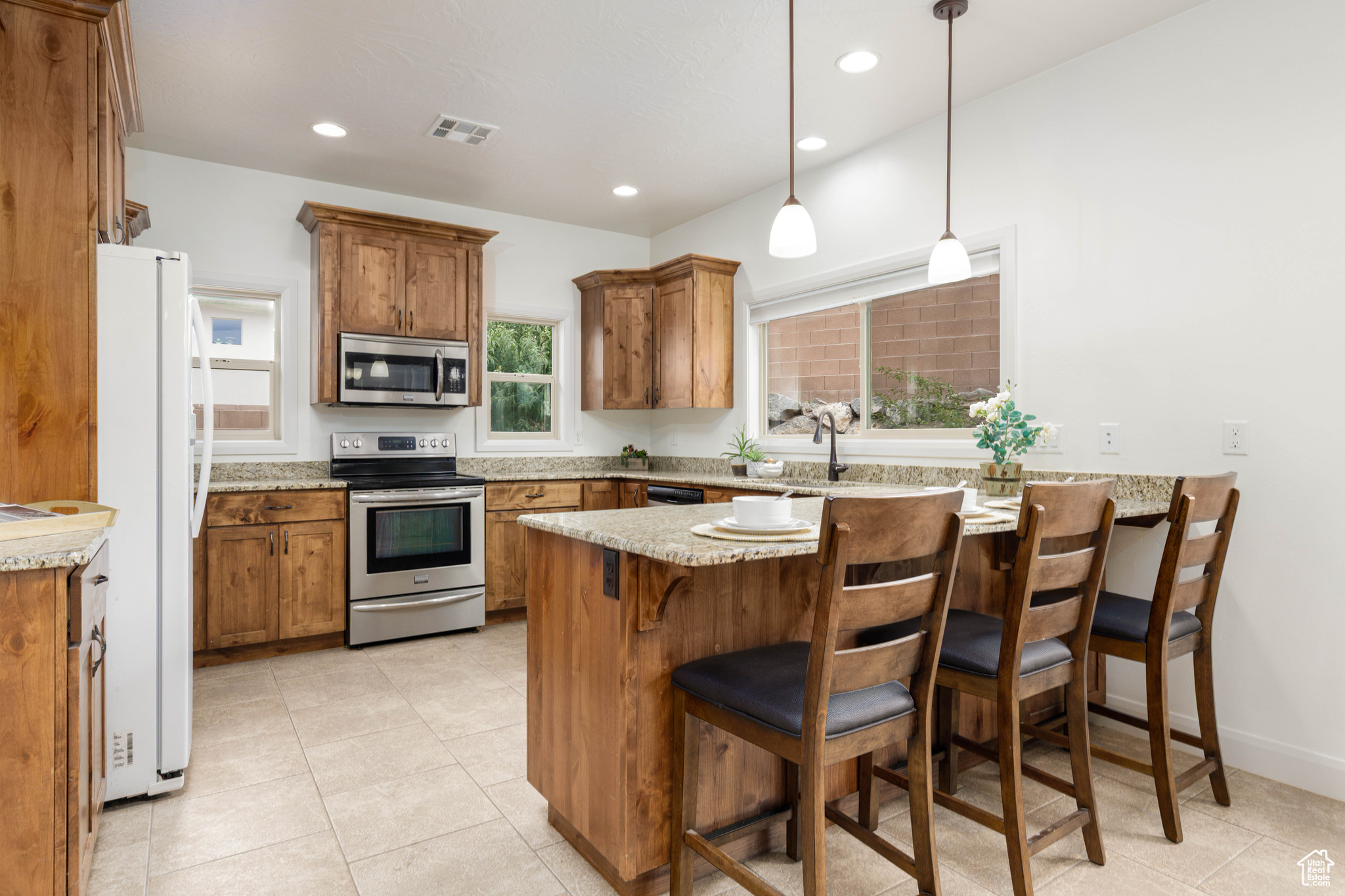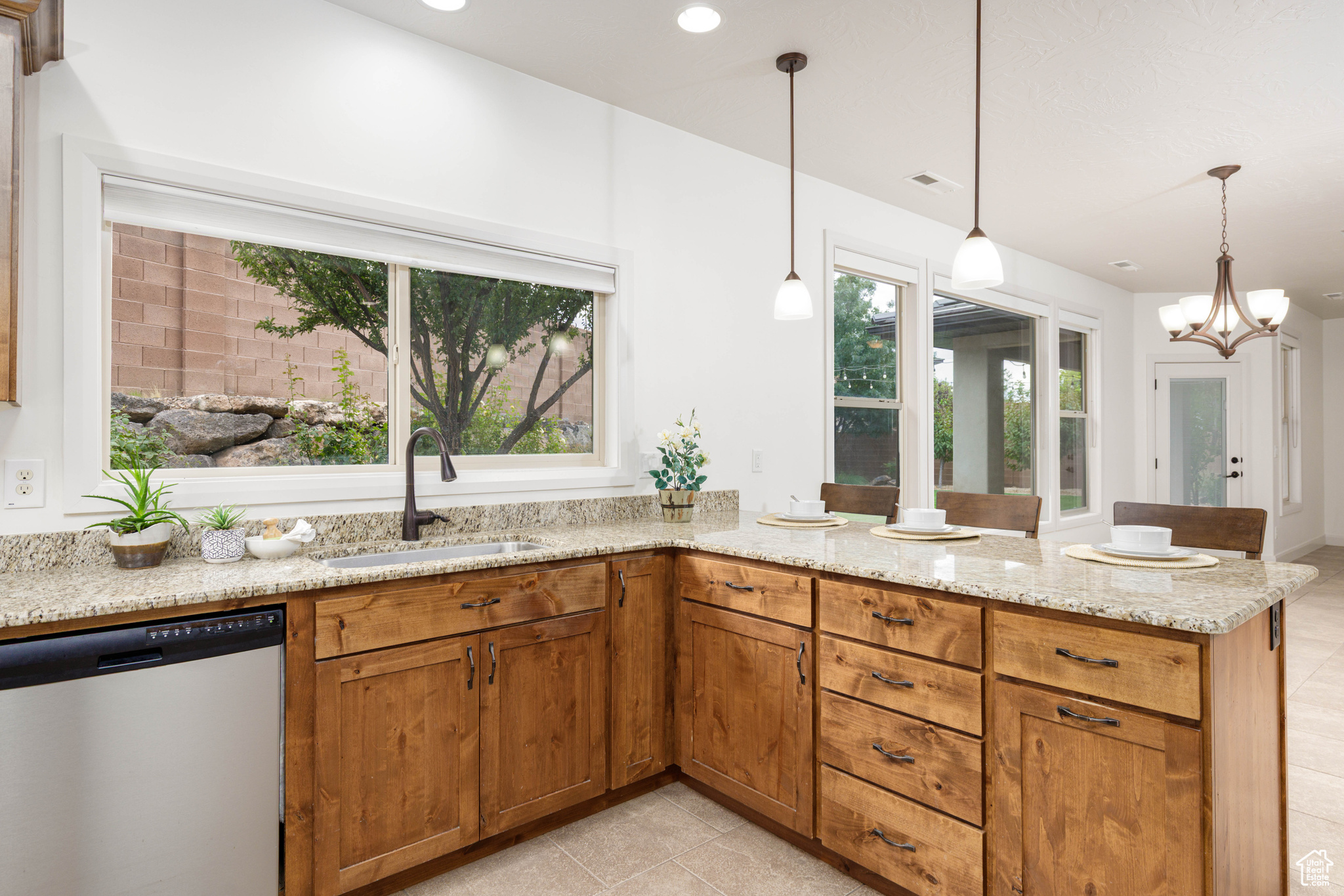 Spaces That Inspire Connection This single-level home close to Grandpa's Pond in Hurricane's Park View subdivision is all about ease, flow, and connection. With over 2,100 square feet, four bedrooms, and two and a half bathrooms, the layout creates space for both togetherness and privacy. Wide tile hallways, open living areas, and thoughtful finishes make gatherings effortless-from casual weeknights to full-on celebrations. The kitchen features granite counters, a large pantry, and beautiful cabinetry, blending function with style. A primary suite with walk-in closet, jetted tub, and separate shower offers a private retreat, while block walls, covered patio, and landscaped yard create an outdoor setting designed for connection and relaxation. Practical features add even more appeal, including an attached three-car garage, energy-efficient upgrades like a radiant attic barrier and smart wiring, and RV parking tucked behind the fence for both convenience and privacy.