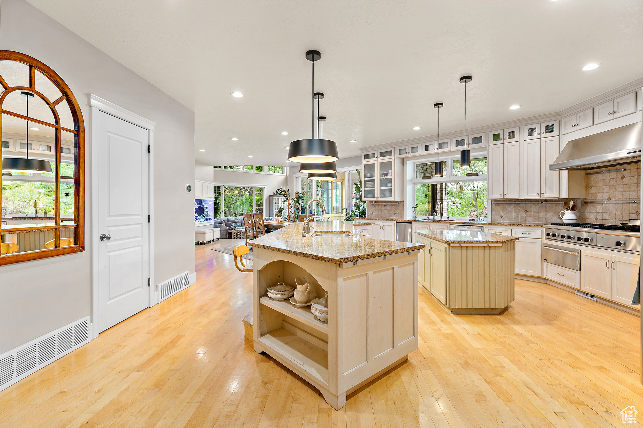GREAT LOCATION at the end of a Cul-De-Sac and close to schools, parks, shopping, and American Fork canyon* Enjoy unmatched mountain, valley, and lake views in this Parade of Homes model designed for entertaining and comfort* Step into an impressive two-story entry with soaring ceilings, expansive windows that bring nature inside, and hardwood floors* Gourmet Kitchen features dual islands, built-in refrigerator, Thermador range, double ovens, and plenty of storage. Perfect for hosting family and friends! Open floor plan, sunroom, and large gathering spaces on every level. SALT WATER SWIMMING POOL* Hidden treasures throughout, including a secret office behind bookcases, a ladder-accessible loft, and a hidden playroom through a walk-in closet* Full walkout basement with theater, game room, exercise room, second kitchen, family room, and private patio. Perfect for mother-in-law living* Plus, walk out to a beautifully landscaped yard with saltwater pool, covered patio, garden, fruit trees, children's playground, and room for entertaining* Lots of Parking & Storage with an Oversized 4-car garage (1,268 sq ft) plus RV parking.* Additional features include central vac, smart thermostat, video doorbell, and mor* Don't miss your chance to own this one-of-a-kind property where luxury living meets everyday adventure. Schedule your private tour today!