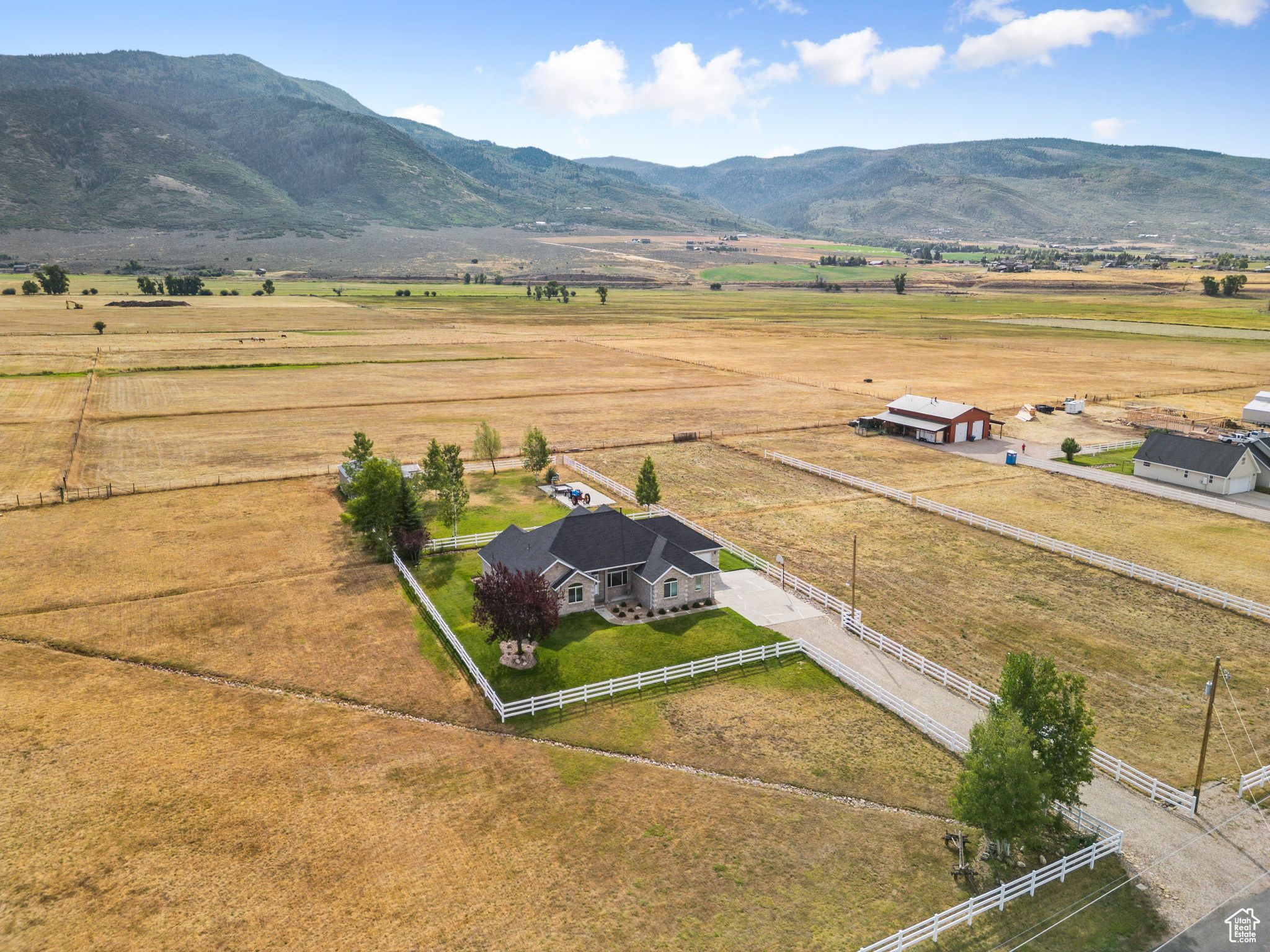 On the market for the first time! This Iconic home is located right in between the town of Oakley and Marion. With incredible views of Uintas and the Kamas Valley this 2195 Sq ft, 3 bed 2.5 bath home sits on 2.2 acres of Horse property complete with a barn for horses, toys, or storage. This handsome home has been meticulously cared for with large mature trees and a beautiful yard with plenty of space for homesteading, or enjoying time with family and company. The Property also boasts an excellent barn for horses with a tack shed and storage. This could be utilized as a potential ADU in the future. The meticulous landscaping also includes a sports court and fireplace to entertain family and guests.The Kamas Valley is only located 15 minute from the Uinta National Forest and only 30 minutes from Park City and world class ski resorts, dining experiences, and shopping. Act Fast! Square footage figures are provided as a courtesy estimate only and were obtained from County Records . Buyer is advised to obtain an independent measurement.