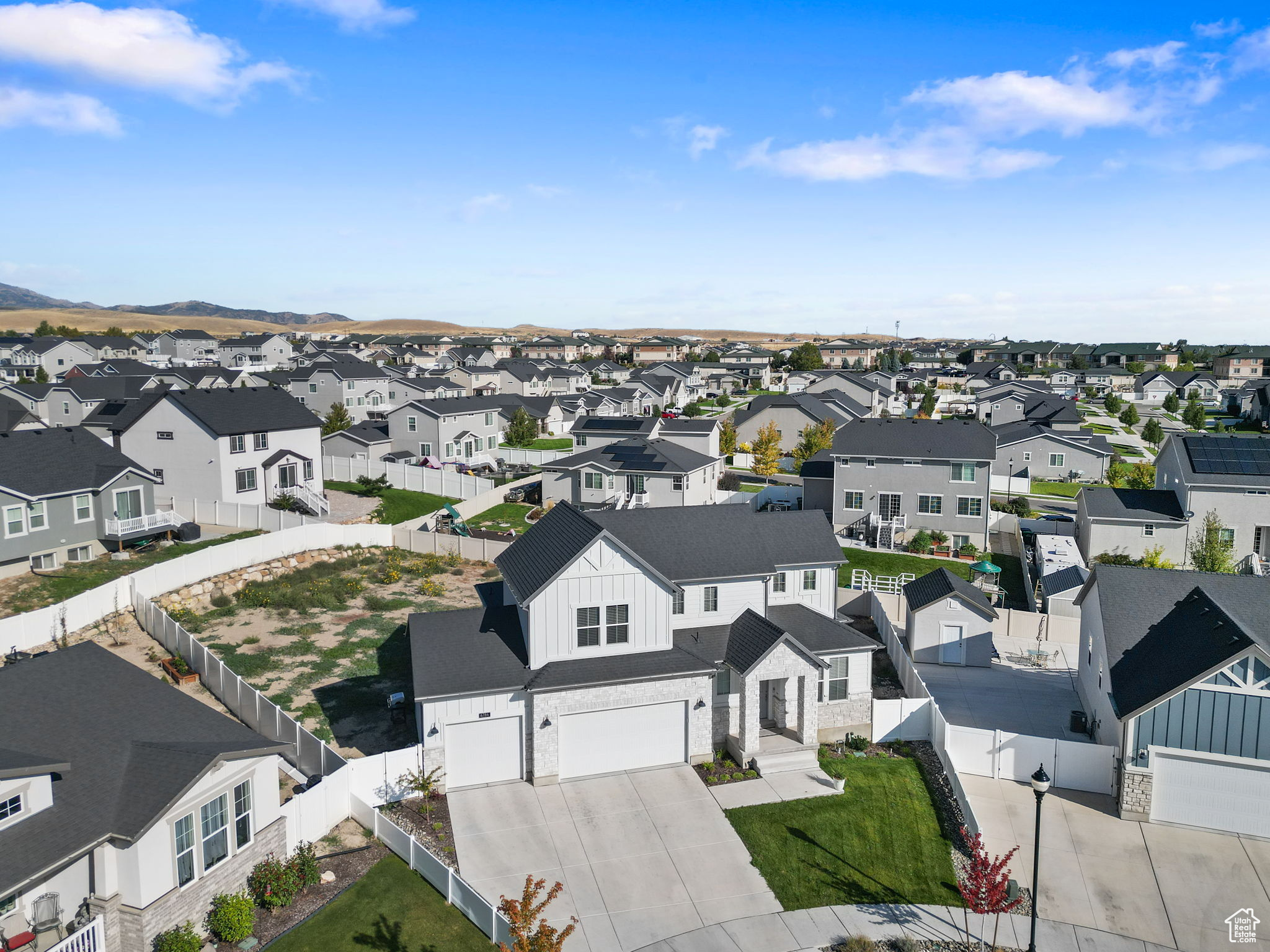 **PRICE IMPROVEMENT November 29, 2025*** Modern Comfort Meets Timeless Charm in a Prime Location. Discover this beautifully designed modern farmhouse offering the perfect blend of style, space, and convenience. Inside, you'll find a bright, open floor plan ideal for both everyday living and entertaining with generous living areas, a dedicated office, and a gourmet kitchen that flows seamlessly into the heart of the home. The spacious primary suite is conveniently located on the main level, offering privacy and ease of access. Enjoy the flexibility of an unfinished basement ready to be customized to fit your needs; whether it's a home theater, gym, or additional bedrooms. Outside, the large .31-acre lot offers endless potential, with plenty of room to create your dream backyard. A rare 3-car garage provides ample storage for vehicles, gear, or hobbies.Situated just minutes from both Jordan Landing and Mountain View Village, this home offers quick access to shopping, dining, and entertainment, while still being tucked into a peaceful, residential setting.
