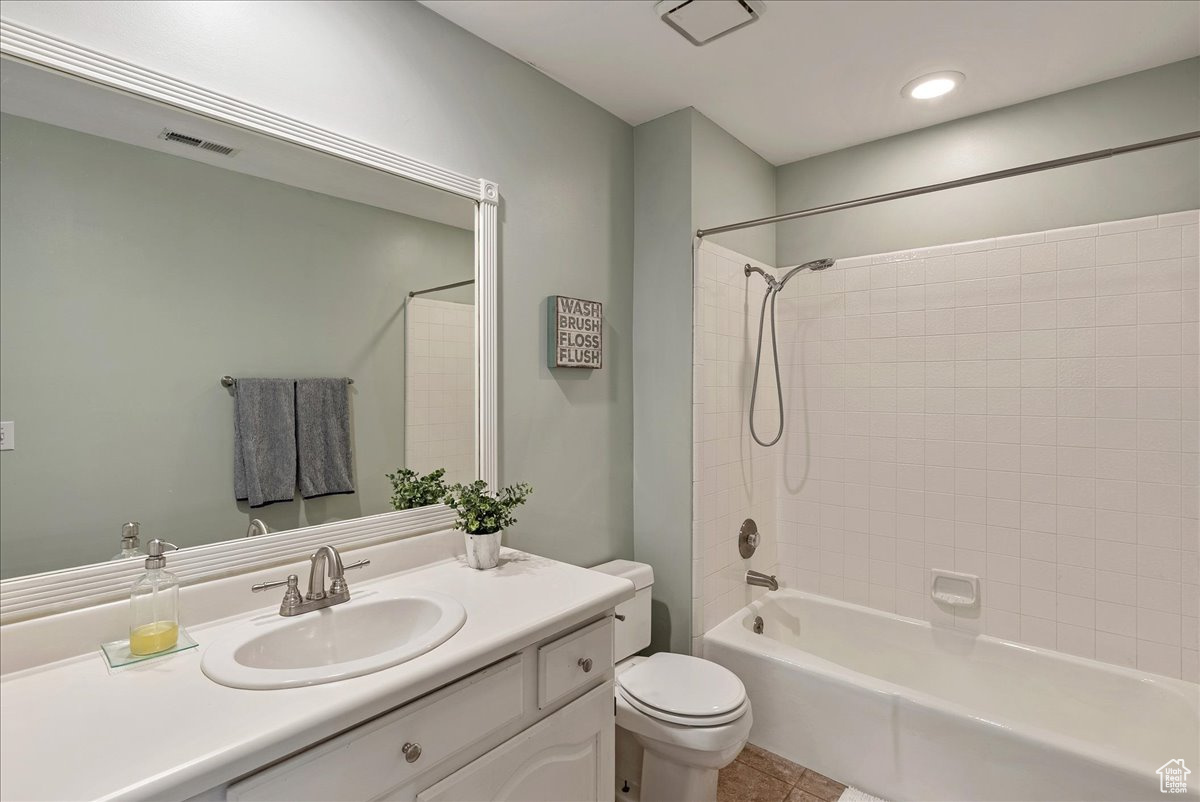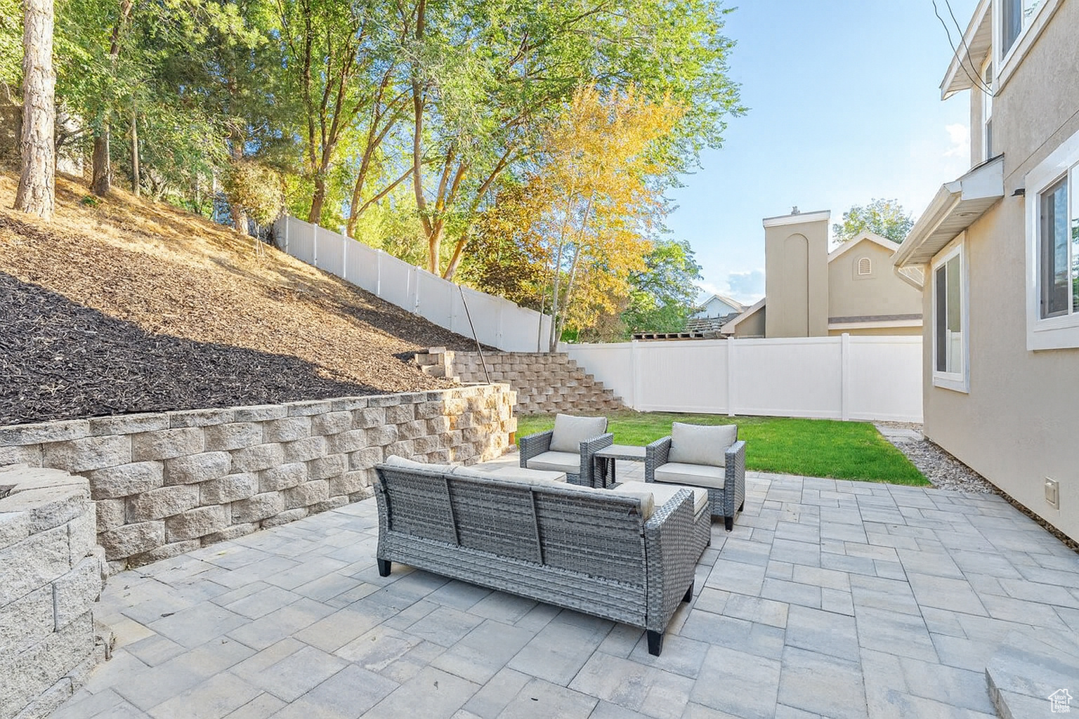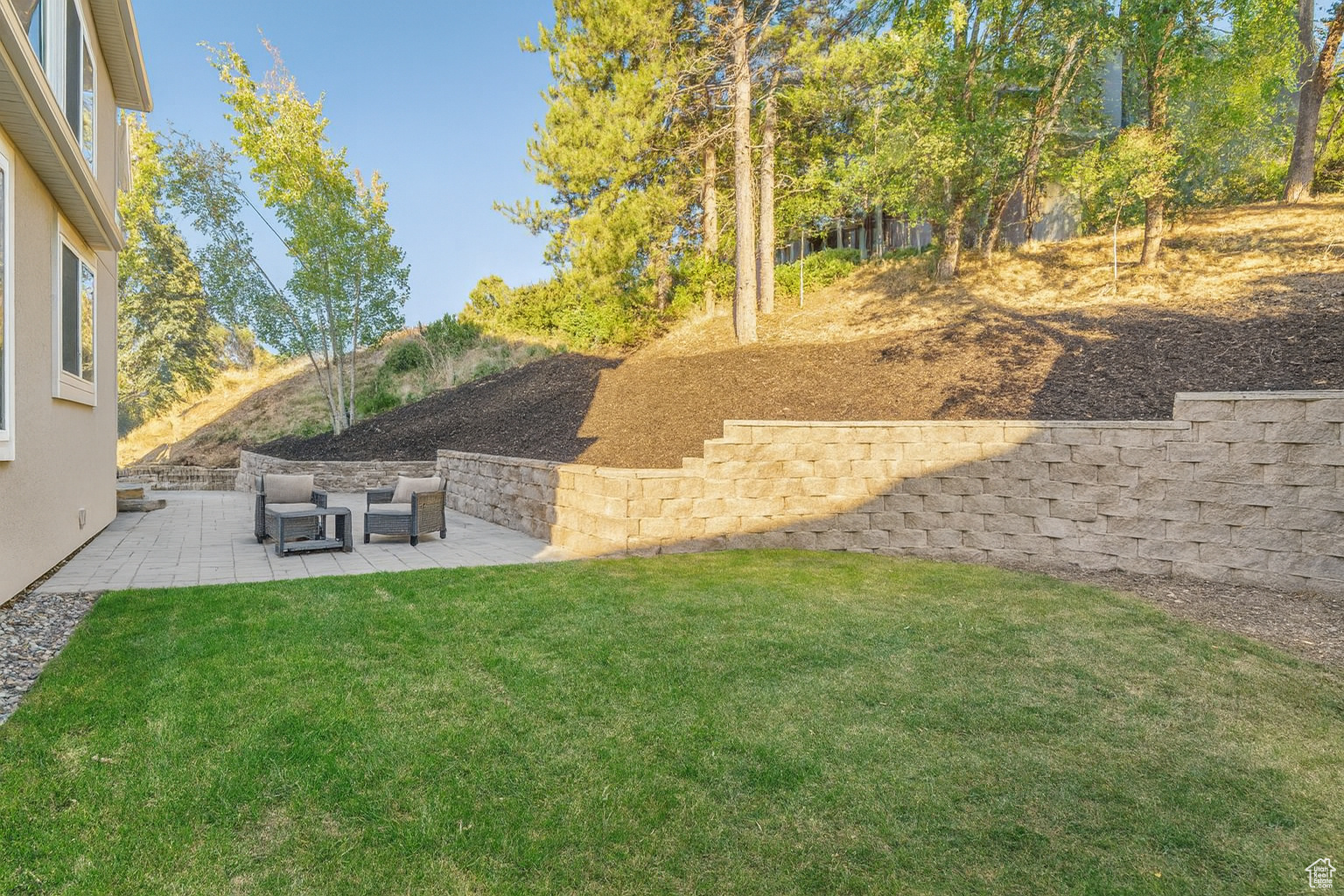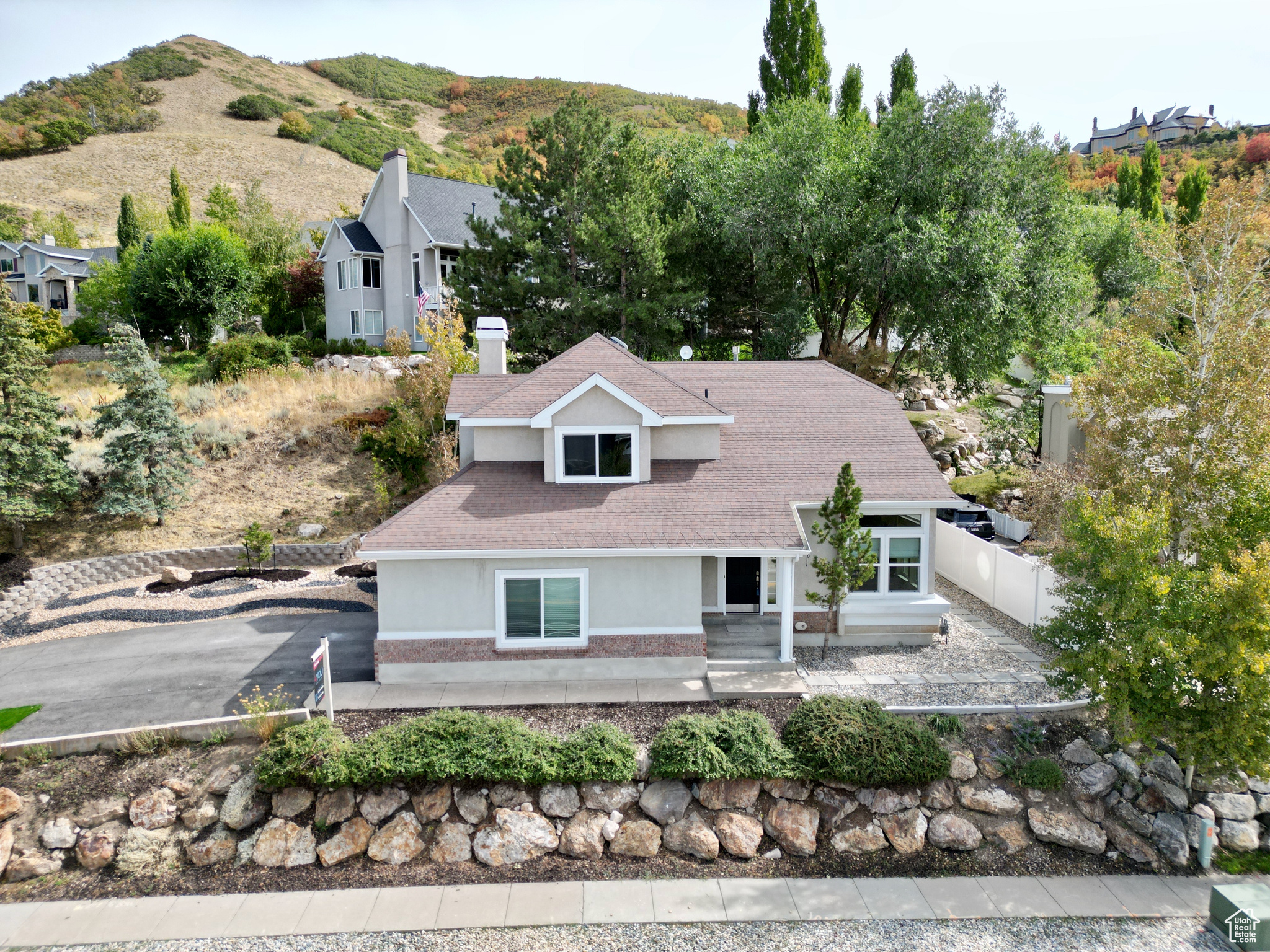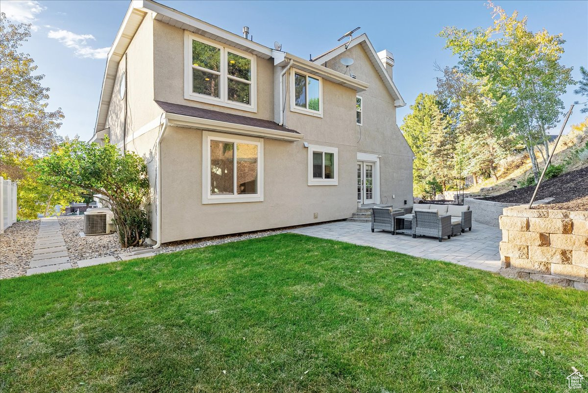 Located on Bountiful's highly sought-after east bench, this 5-bedroom, 4 bath, 2-story home offers an exceptional lifestyle. Relax in your backyard with a true mountain-living feel, surrounded by low-water, drought-tolerant landscaping. This is an entertainer's delight, as the formal living and dining areas connect seamlessly with the kitchen, semi-formal dining, and family space-perfect for gatherings of any size. Inside, you'll also find open living spaces filled with natural light (from the new vinyl windows on the main and upper floor), a finished basement for added flexibility, and room to grow. The paver patio, complete with a beautiful retaining wall and grassy space, is perfect for outdoor entertaining-or for your furry friends to enjoy. Additional highlights include a second plumbed laundry space on the main level (currently used as a closet) and central vacuum. Whether hosting friends or enjoying peaceful evenings, this home offers beauty, privacy, and comfort-inside and out. Square footage figures are provided as a courtesy estimate only and were obtained from ______________ . Buyer is advised to obtain an independent measurement.
