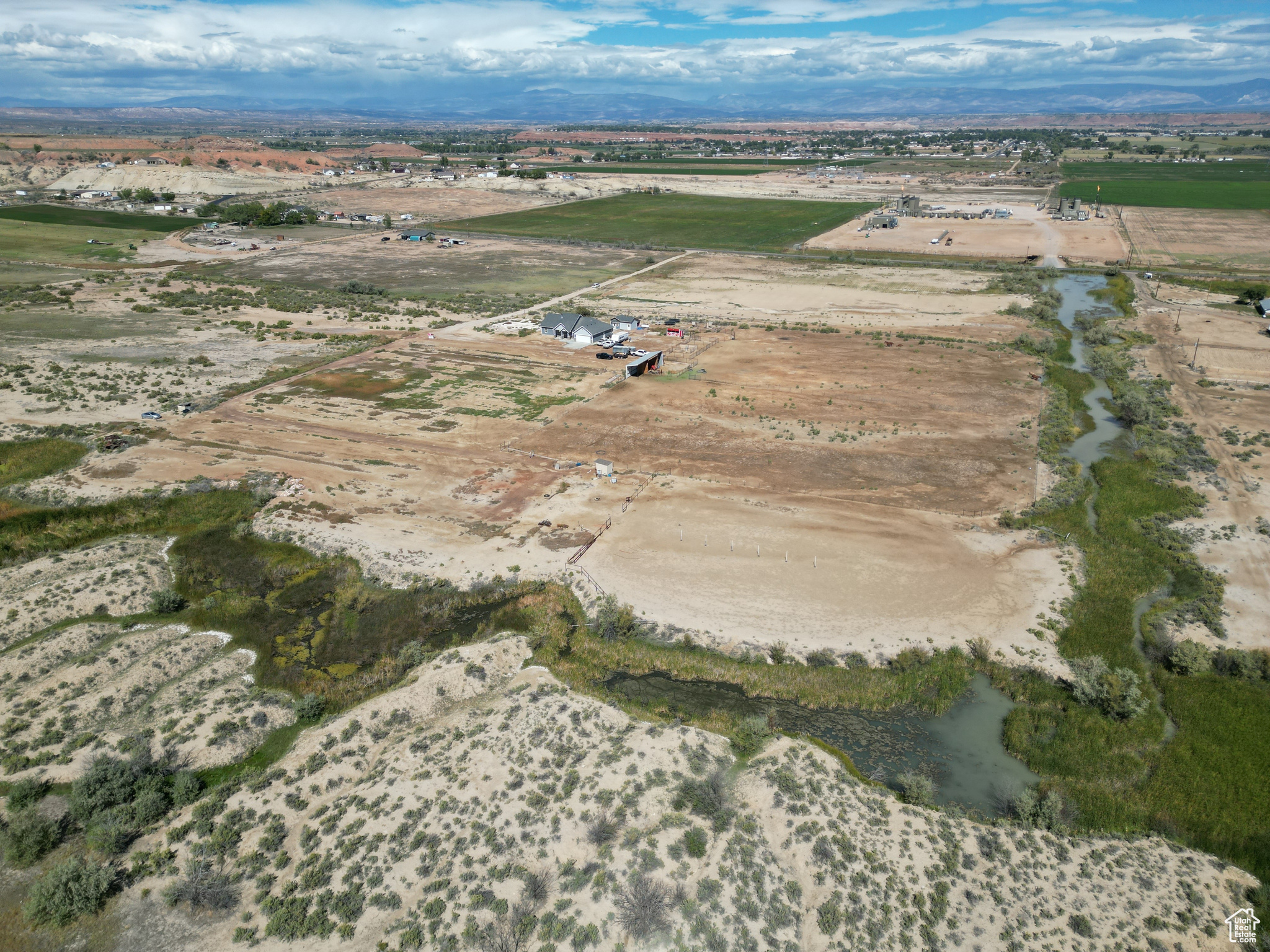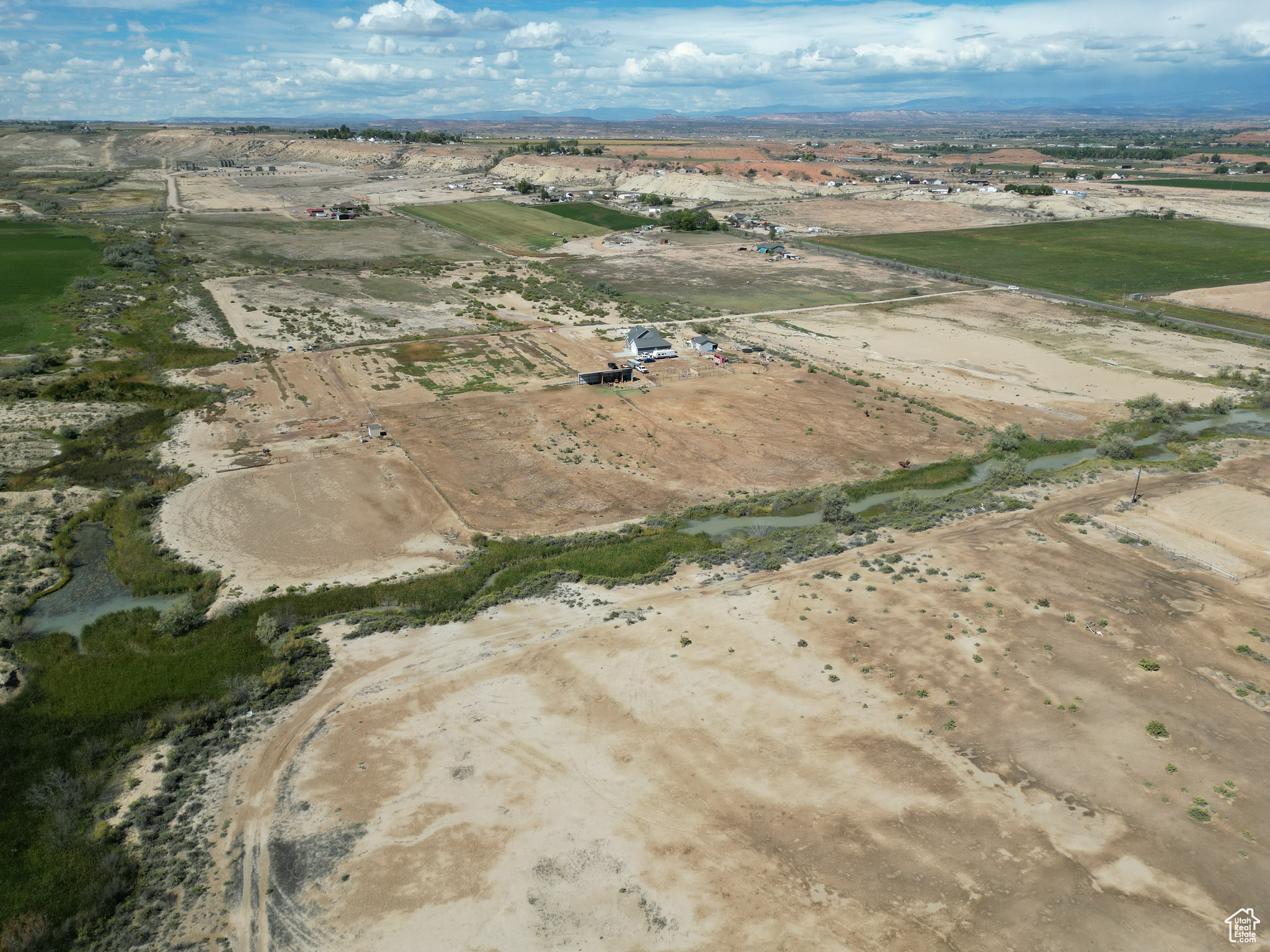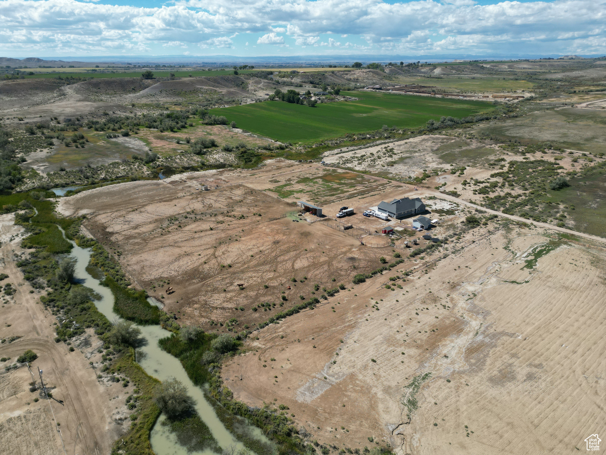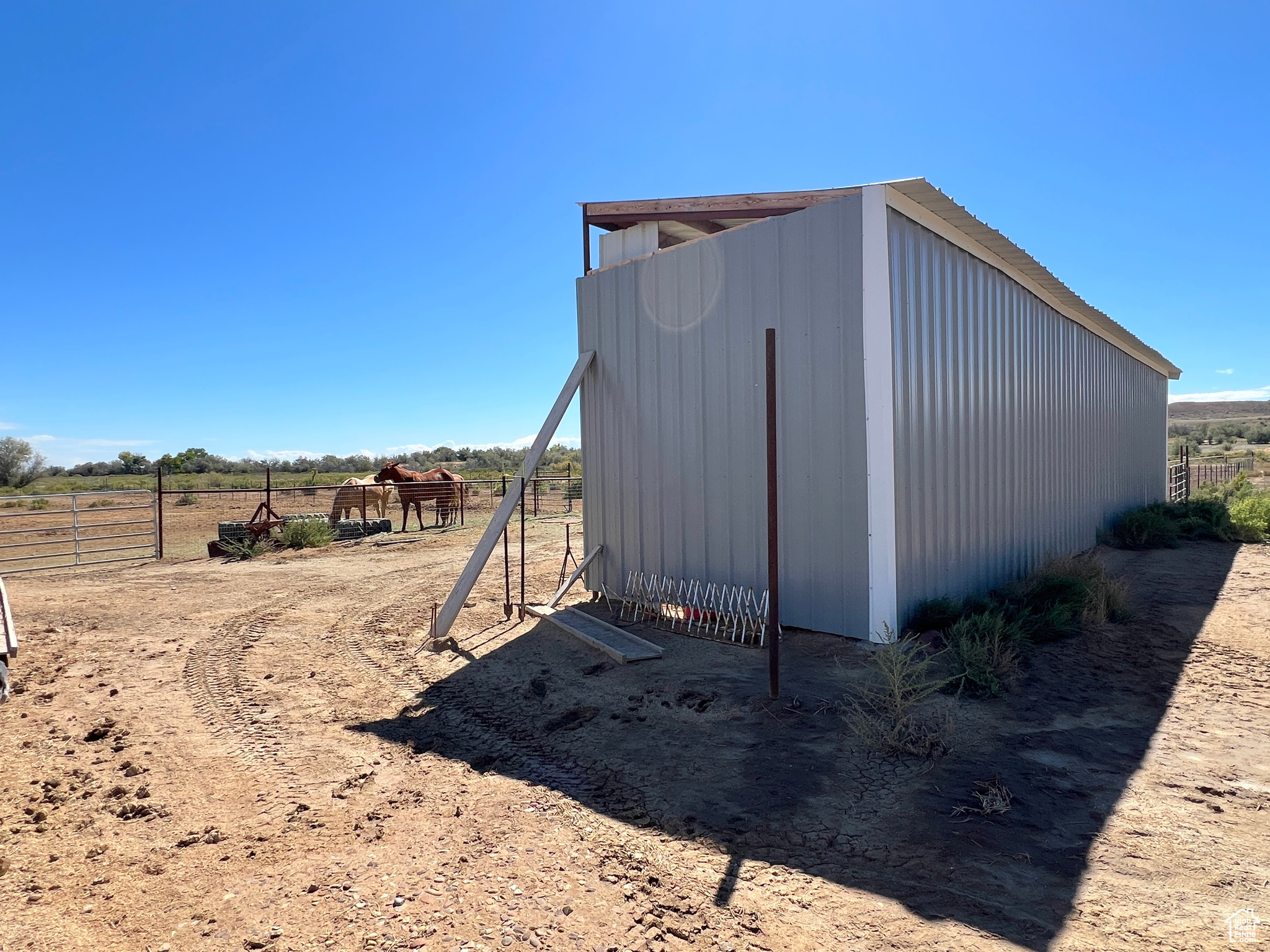HORSE PROPERTY! This immaculate 2,000 SF home, built in 2022, sits on 9.61 acres and includes 4 Class C Dry Gulch water shares. The land is well set up with wheel lines and risers for irrigation, making it ideal for farming or livestock. On the southeast portion of the property, you'll find the beginning of an arena ready for riding, training, or other equestrian activities. Inside, you'll enjoy one-level living with 5 bedrooms, 2 baths, and an open-concept layout that brings the family, kitchen, and dining areas together seamlessly. The home features beautiful wood-style flooring, a spacious dining area, a gorgeous wood fireplace & mantle and a custom farm-style kitchen with quartz countertops and cabinetry designed for both style and function-perfect for entertaining. The property also offers a large 2-car garage, plus outdoor amenities for both living and farming. Out back, enjoy a storage shed and chicken coop, while to the east you'll find corrals and a covered awning ideal for protecting farm equipment or storing hay. Square footage figures are provided as a courtesy estimate only and were obtained from county records. Buyer is advised to obtain an independent measurement.