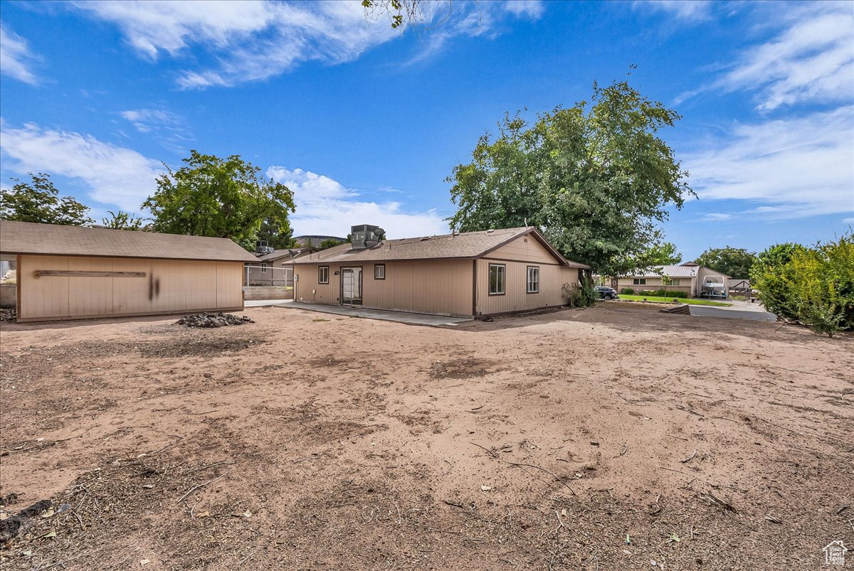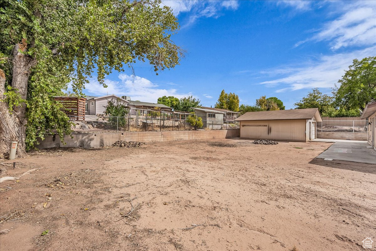 ***OFFER VERBALLY ACCEPTED, WAITING ON SELLER SIGNATURES***Great St. George home on nearly a quarter acre. Located in a nice neighborhood and on a quiet street. Large yard with many possible layouts and finishing configurations. Large rear patio for entertaining. Tons of off-street parking and a single car garage with attached workshop. Interior is complete with laminate flooring, ceiling fans, can lights, and double-paned windows. Large kitchen with updated cabinet space, stainless steel fridge, and bar. Large living room with tons of natural light, and direct access to dining/kitchen. 2 bathrooms and a large laundry room round things off. Tons of rooms for RV parking on west side of home.