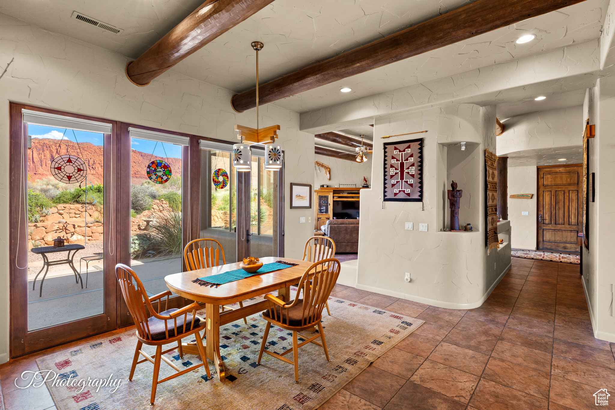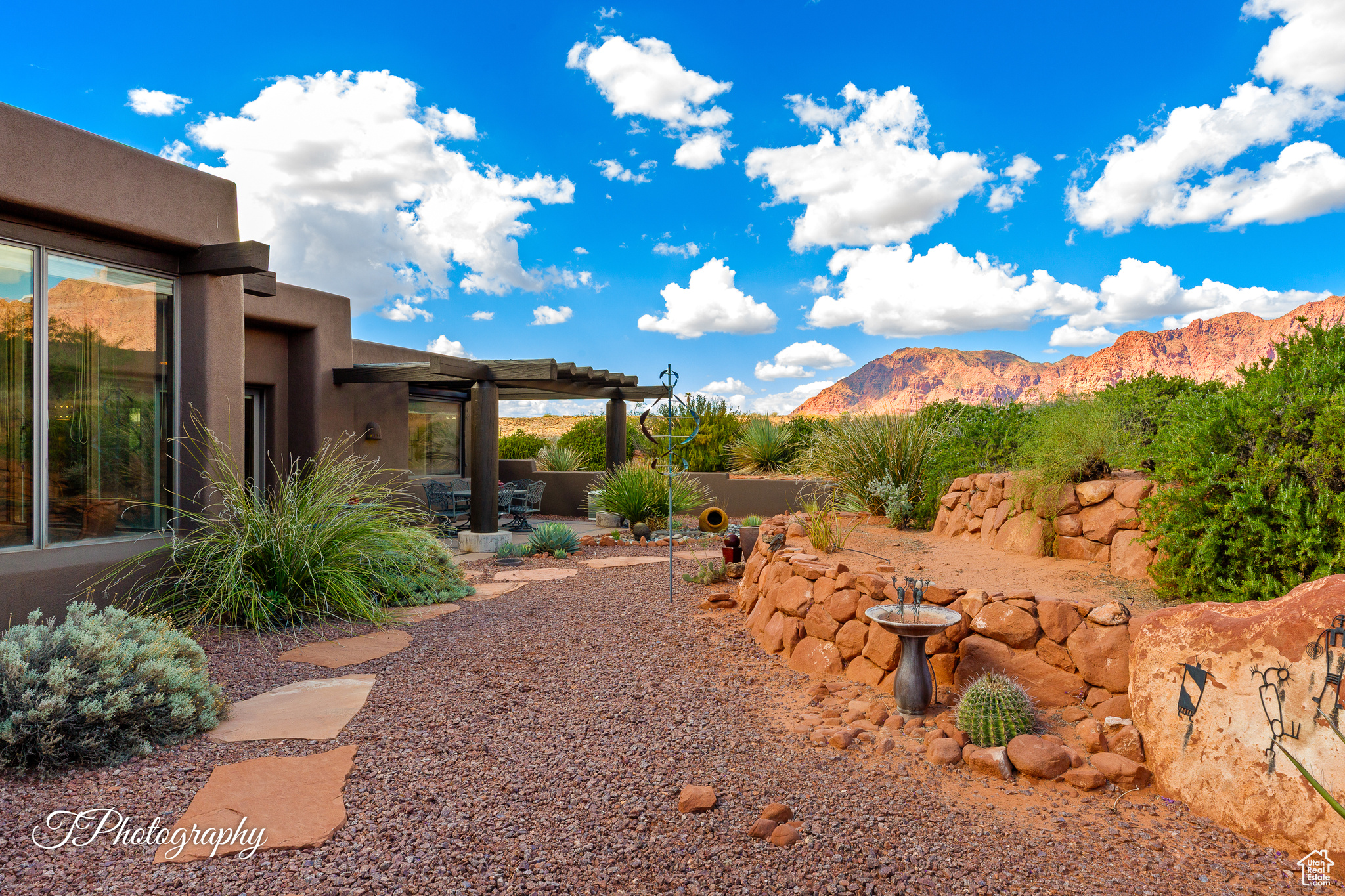 Welcome to 1376 Talachiro. Masterfully sited for inspirational views, seclusion and privacy. A generous .81-acre view lot with lush outdoor living areas and mature landscaping. Well-appointed 3-Bed, 2-Bath home with dedicated Den/Office, and flexible third bedroom used currently as a craft/studio space. A well cared for and deeply loved original owner, this Kayenta custom build offers many extras. Colorful, classic southwestern Pueblo style with abundant natural light and easy access one-level home features a walk-in closet in every bedroom, a huge walk-in pantry, functional large laundry room and a fantastic heated/cooled workshop off the spacious garage. Form and function with a seamless indoor/outdoor footprint, 1376 is a treasured haven for those seeking the road less traveled. 1376 offers an exceptional experience, boasting its proximity to the Kayenta Art Village galleries, the Center For The Arts, Xetava Cafe & Rusted Cactus bar/grill, and unrivaled access to southern Utah's renowned recreational opportunities: Gunlock State Park and reservoir, Dixie National Forest, and Pine Valley alpine recreation area. Embrace the best of life against the stunning backdrop of Kayenta's inspiring red rock cliffs with waterfalls after a desert downpour, overlooking the sprawling 6,000-acre Santa Clara River Reserve. Whether you're stargazing under the night sky or enjoying the "blue view" of Utah's West Mountain, Arizona's Beaver Dam Wash National Conservation Area, the nearby Joshua Tree National Natural Landmark, and countless other wonders await your discovery.