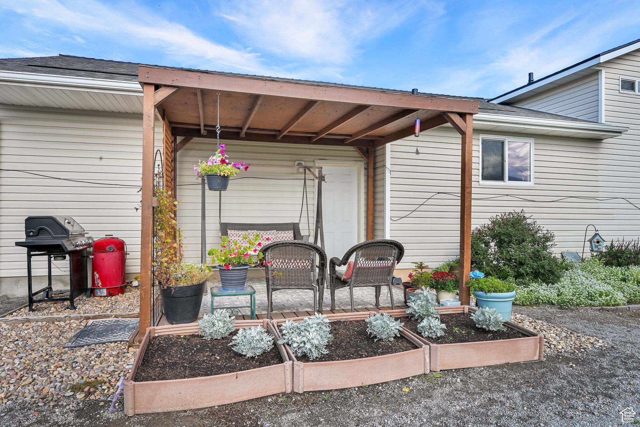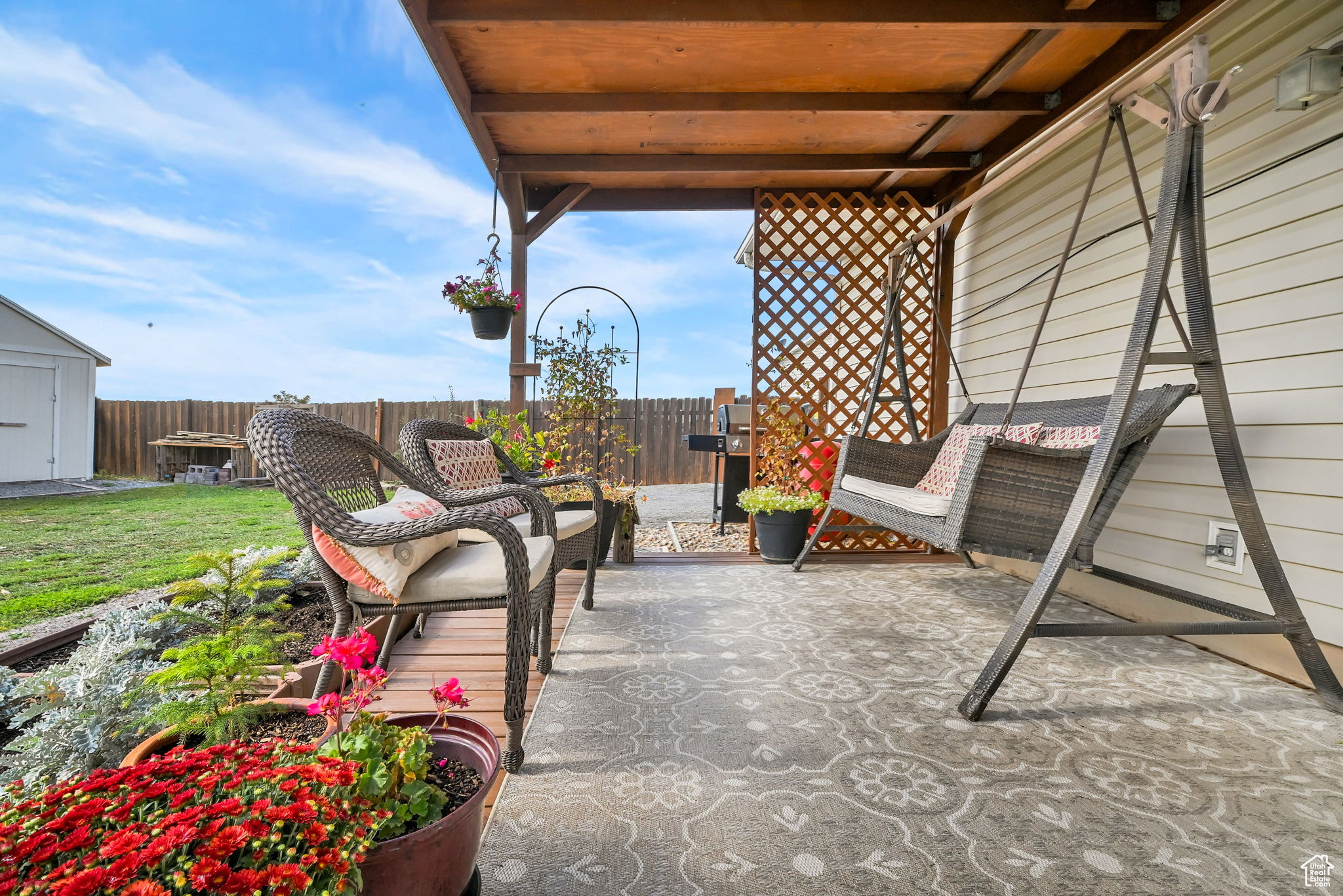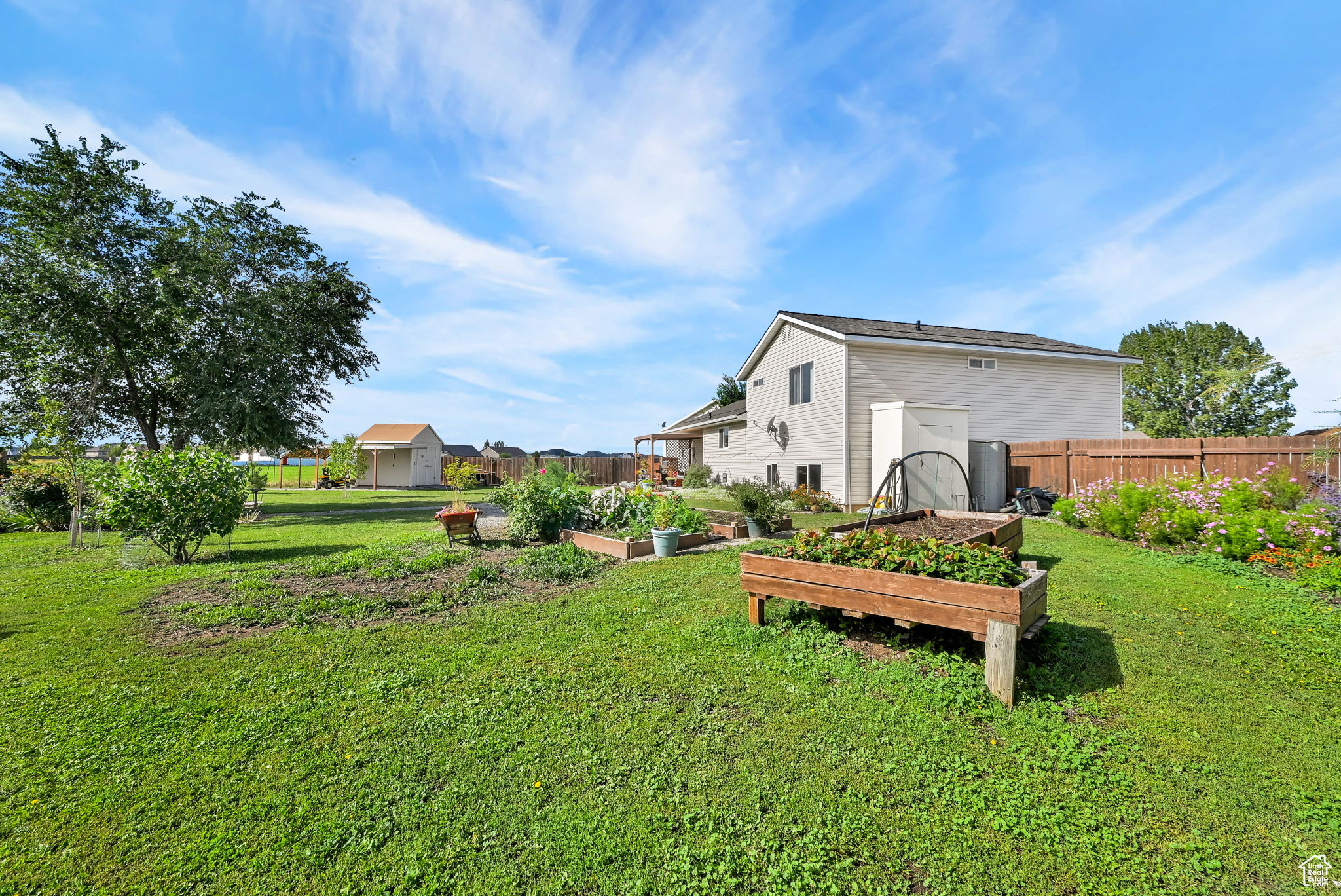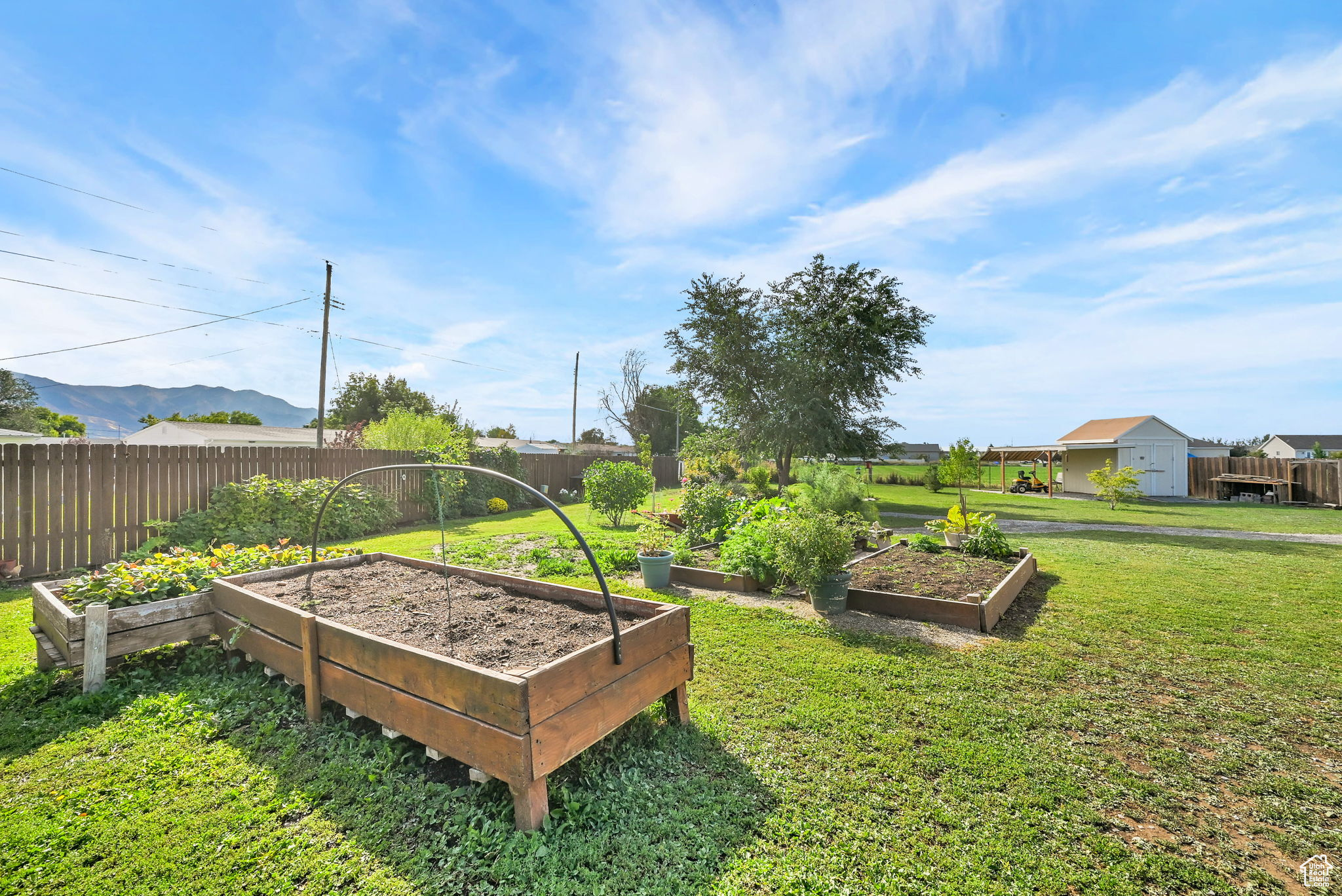 This charming country home offers 5 bedrooms and 3 bathrooms on a spacious third-acre cul-de-sac lot, surrounded by beautiful mountain views. Inside, you'll love the completely updated kitchen featuring quartz countertops and a farmhouse sink. The home also boasts a brand new roof with 140 mph-rated shingles and a transferable 50-year warranty, along with a tall crawlspace with concrete floors providing tons of additional storage. Two storage sheds and a 2-car garage add even more space for all your needs. Enjoy the fully fenced yard, covered backyard deck, and the convenience of secondary water. With modern updates and a peaceful country setting, this home is the perfect place to spread out and enjoy.