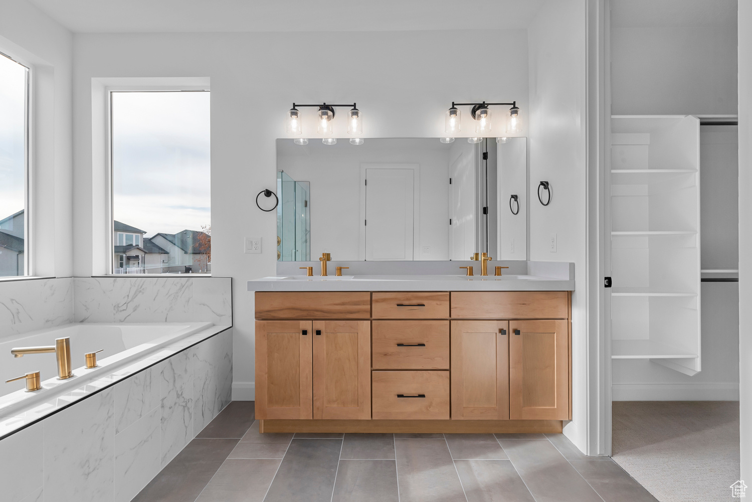 Come see this beautiful brand new Torino farmhouse home in a great Syracuse community! This beautifully crafted residence features a chef's kitchen with maple cabinets with LED lighting, complemented by quartz kitchen countertops and full-height backsplash, pendant lighting above the island, french door refrigerator and stainless steel gas appliances. The home boasts a blend of laminate hardwood, tile and carpet flooring, enhancing both style and comfort. The expanded 3-car garage with enlarged bay doors provides ample space, while the box windows in the kitchen nook and owner's bedroom add charm and natural light. The owner's bathroom is a luxurious retreat with stylish tile surrounds, a Tori tub and black matte hardware, ensuring comfort and relaxation. Additional ceiling fans in the family room and owner's bedroom, along with can lighting, create a well-lit and airy atmosphere and a gas log fireplace in the family room provides added functionality and warmth. Textured walls, two-tone paint, and Entrada base and casing complete this stunning home, making it a perfect blend of modern amenities and farmhouse charm.