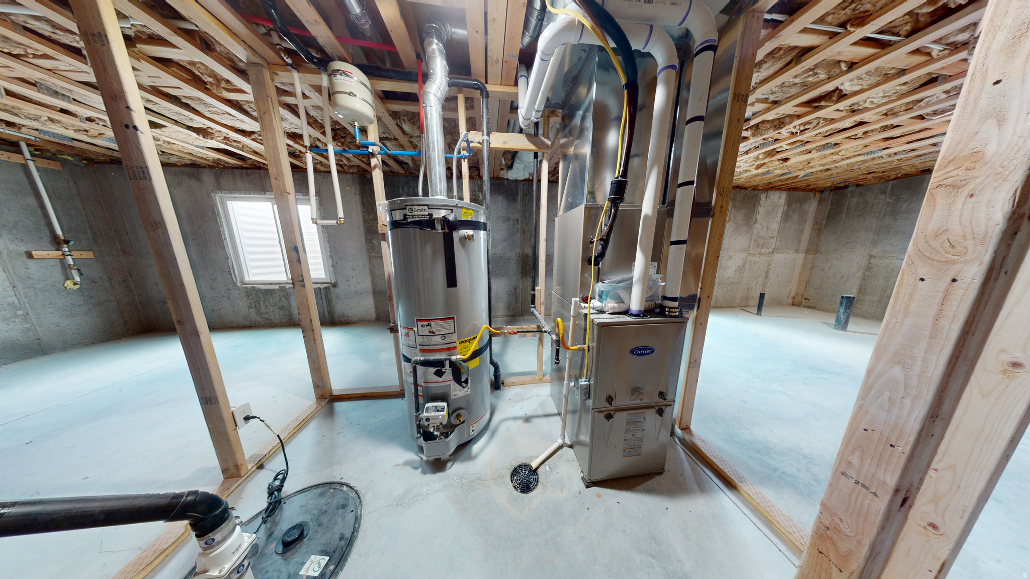 This modern new construction home features a traditional style with a basement, boasting a sleek and contemporary aesthetic with white, gray, and chrome fixtures. The interior includes three bedrooms, two bathrooms, and a two-car garage, with both bathrooms featuring double sinks. The kitchen is equipped with all-new G.E. stainless steel appliances, Corian countertops, and a farm-style kitchen sink. Additional amenities include a pantry, closet organizers, and a special kitchen wastebasket cabinet. The exterior features a spacious back patio accessible from both the master bedroom and dining room and the home is plumbed for a water softener and has garage electric outlets for an electric vehicle charger.